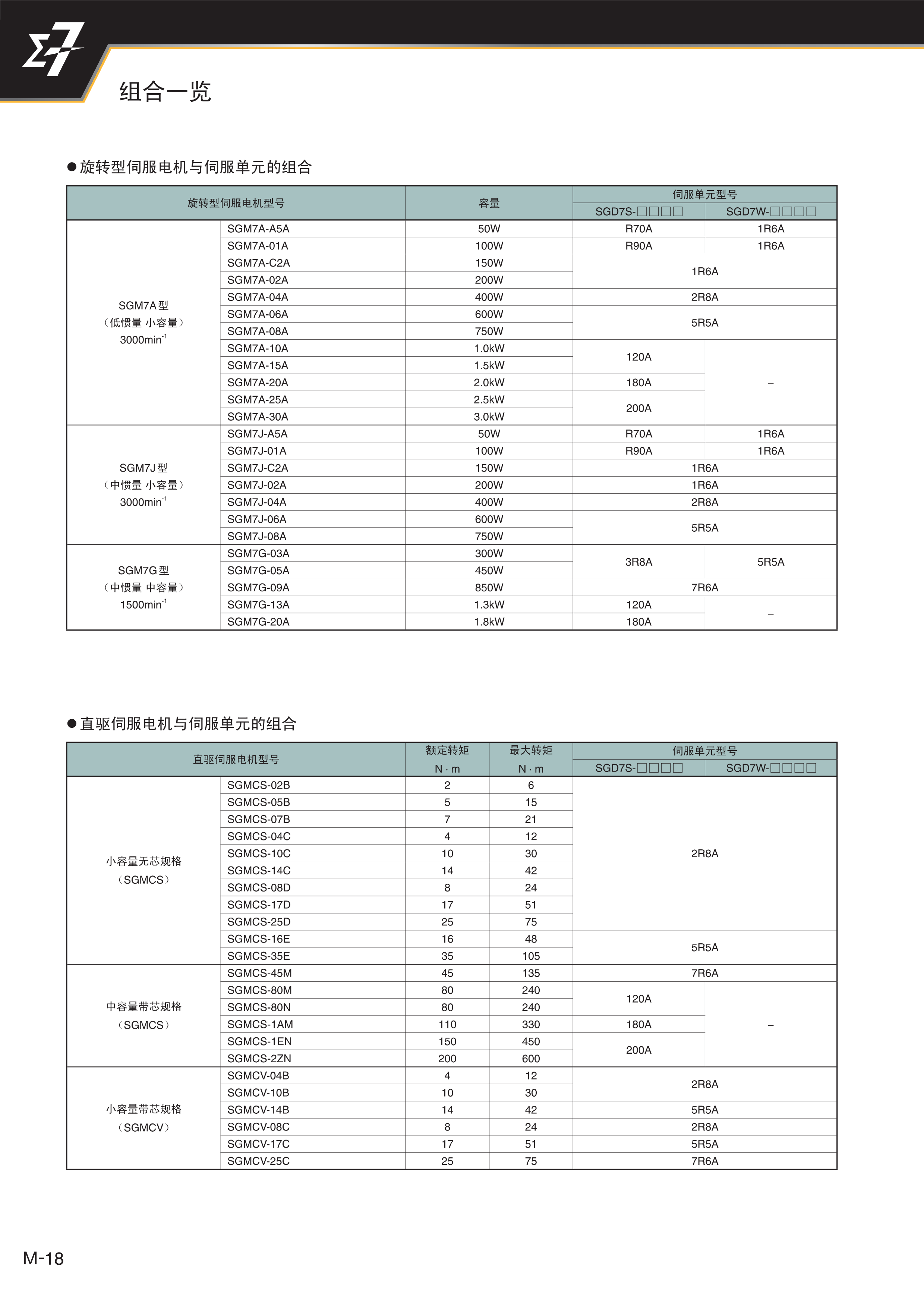 FX安川伺服电机 组合一览,旋转型伺服电机与伺服单元的组合,直驱伺服电机与伺服单元的组合