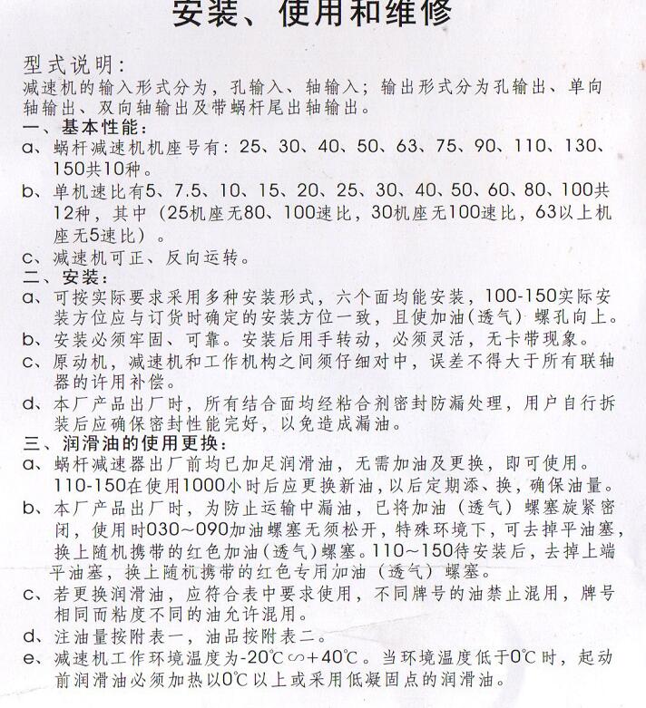 NMRV系列蜗轮蜗杆减速机安装使用和维修说明书