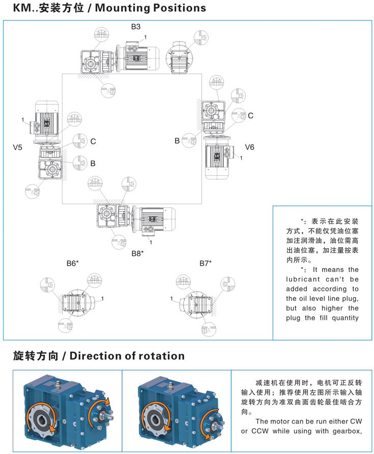 FXKNX系列斜齿轮-准双曲面齿轮减速机 --- 安装方位