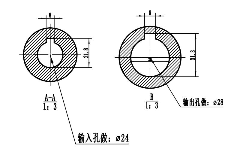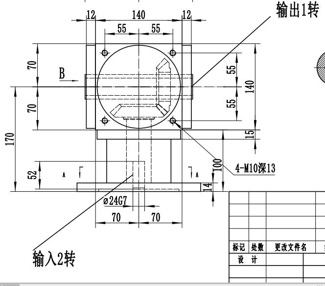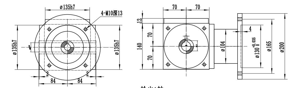 HDAF14-2-F螺旋锥齿轮换向器速比2外型安装尺寸图纸配电机配1.5KW1.1KW三相异步电机