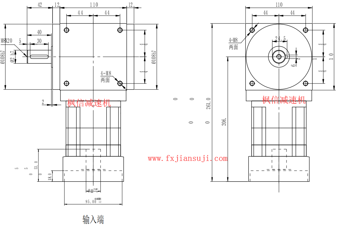 FXPW110精密行星直角换向器配台达伺服电机轴22功率1.5KW单向输出轴