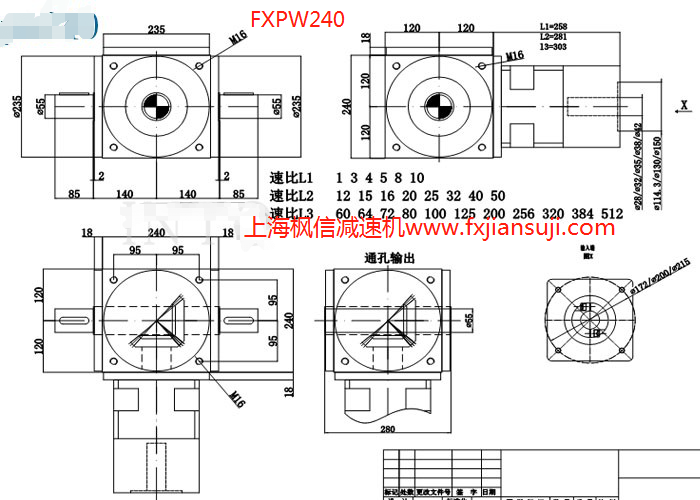 伺服电机专用直角行星转角箱FXPW240减速机配三菱台达松下安川伺服电机
