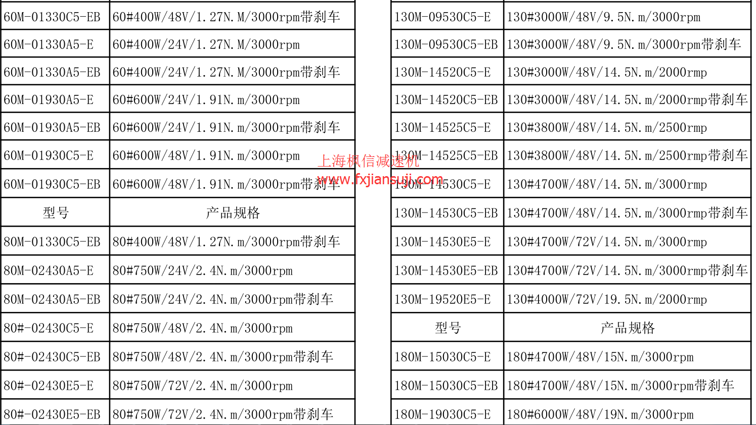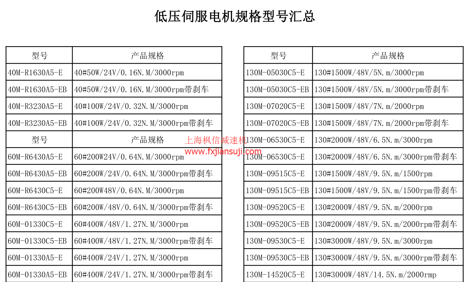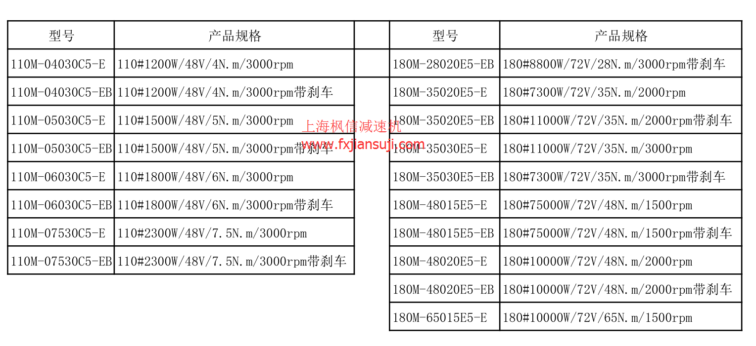 低压直流伺服电机规格型号汇总