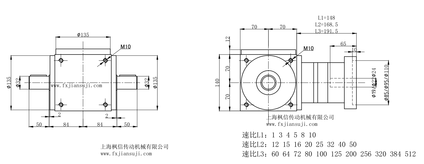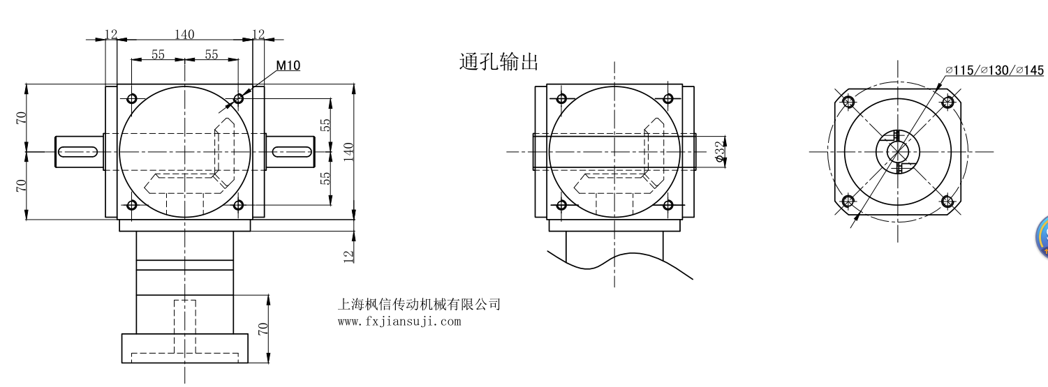 FXPW140行星转向器外型安装图双出轴输出轴32速比1速比2速比3配松下伺服电机三菱伺服电机