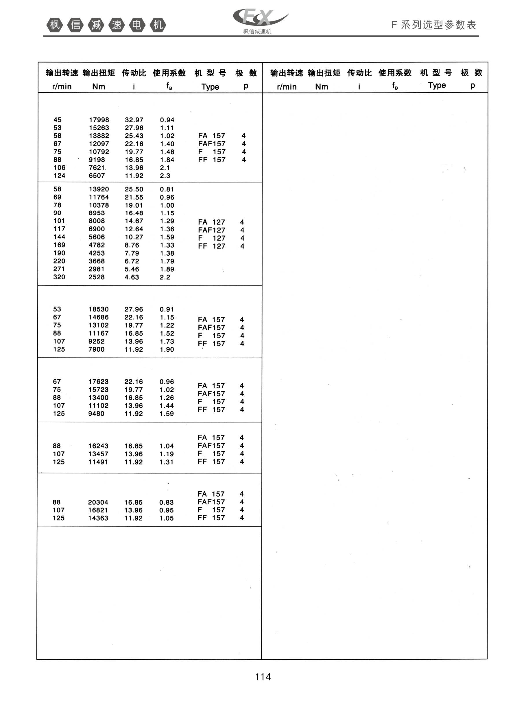 FXF系列平行轴斜齿轮减速机。F系列选型参数表