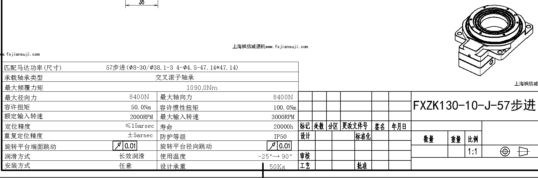 FXZK130-10-J-57步进中空旋转减速机配松下台达安川西门子三菱富士欧姆龙伺服电机马达