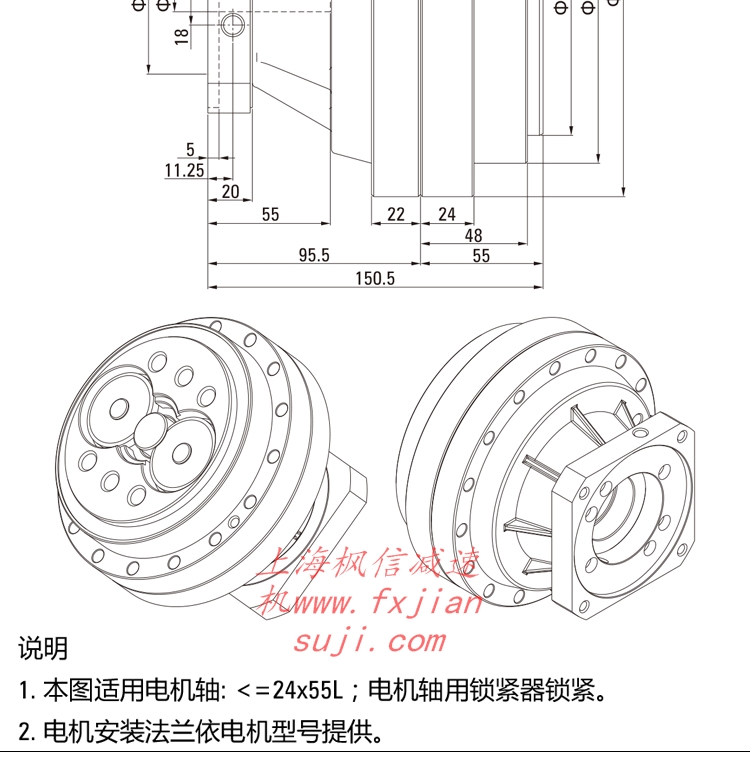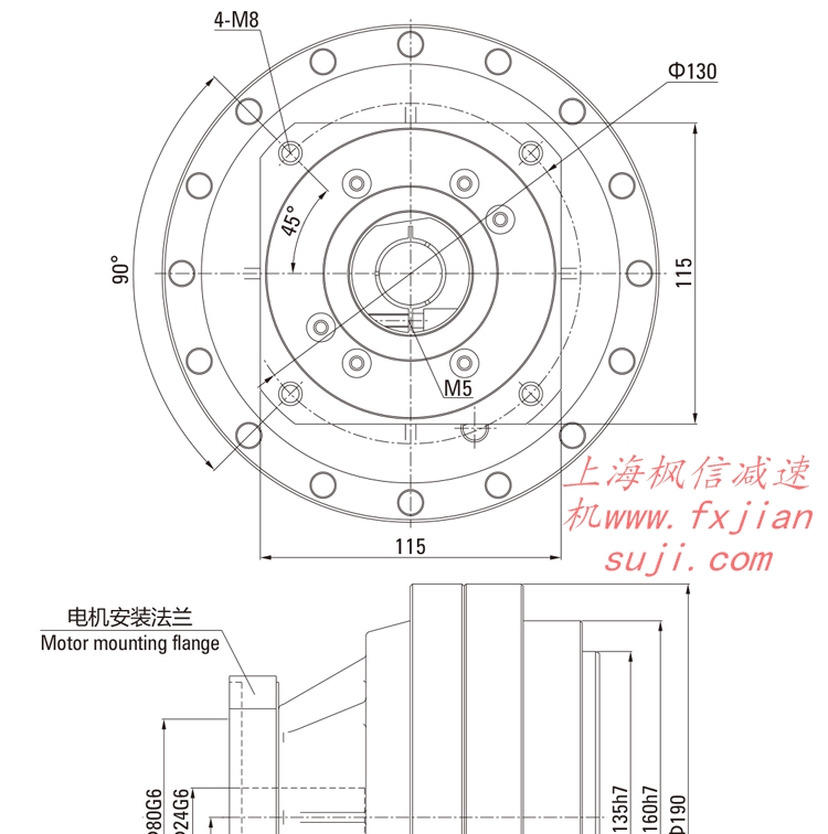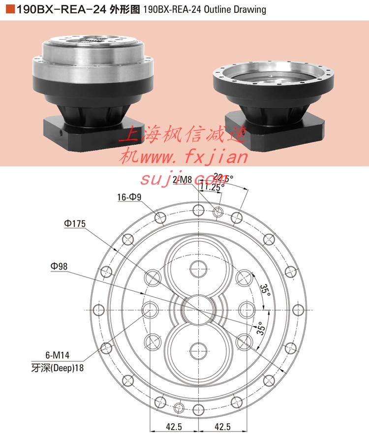 FX190BX-REA-24外形图谐波减速器-RV机器人关节减速机配松下台达安川西门子三菱富士欧姆龙伺服电机马达