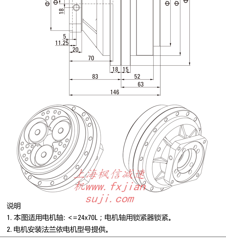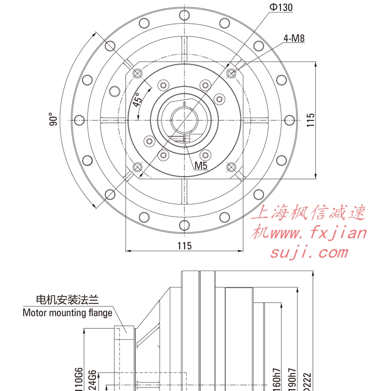FX220BX-REA-24外形图谐波减速器-RV机器人关节减速机配松下台达安川西门子三菱富士欧姆龙伺服电机马达