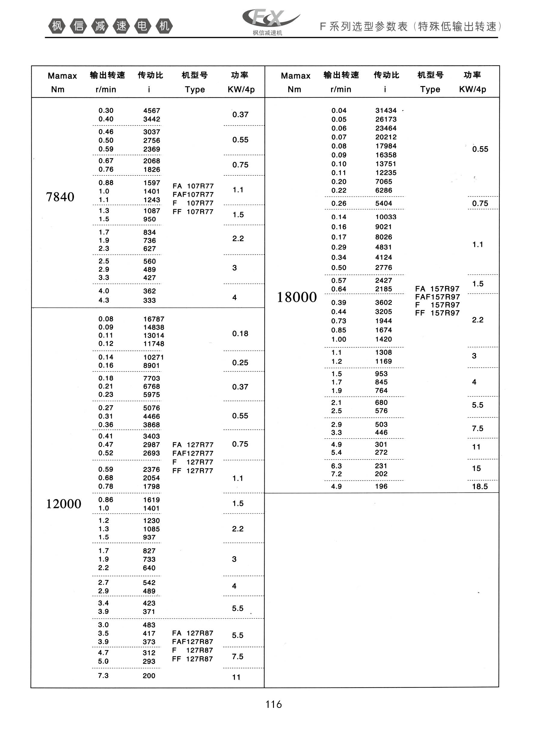 FXF系列平行轴斜齿轮减速机。F系列选型参数表【特殊低蔬菜传速】