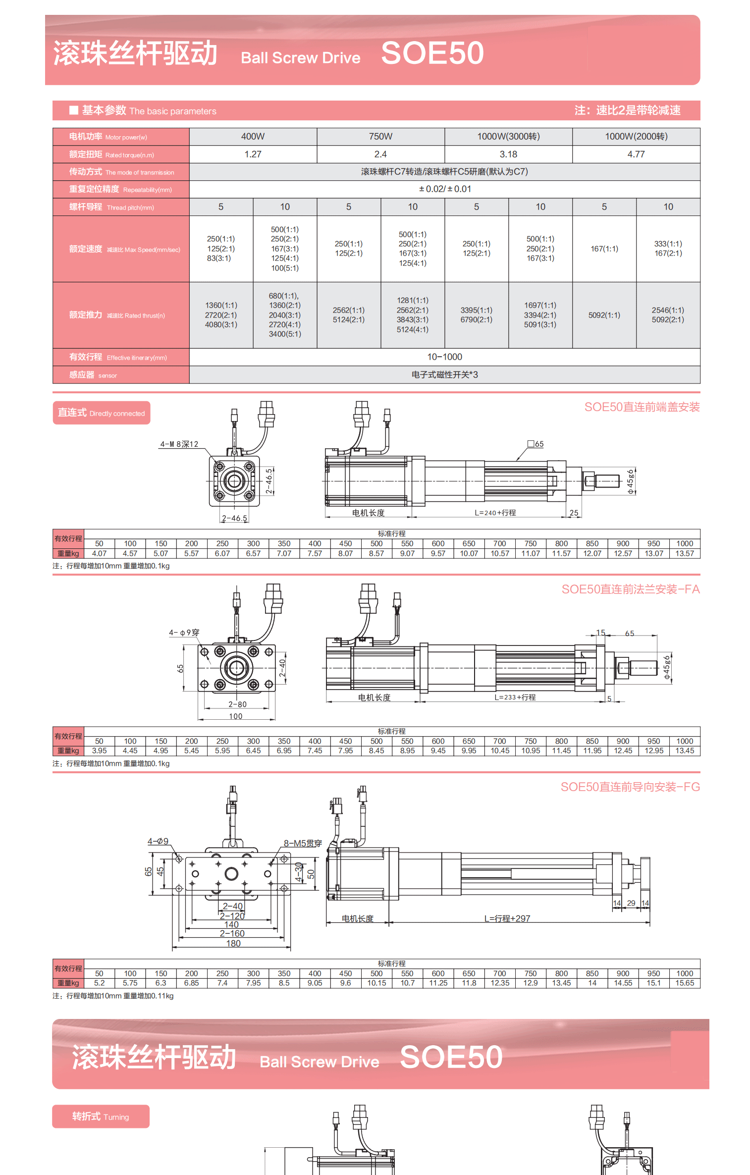 滚珠丝杆驱动 Ball Screw Drive SOE50
