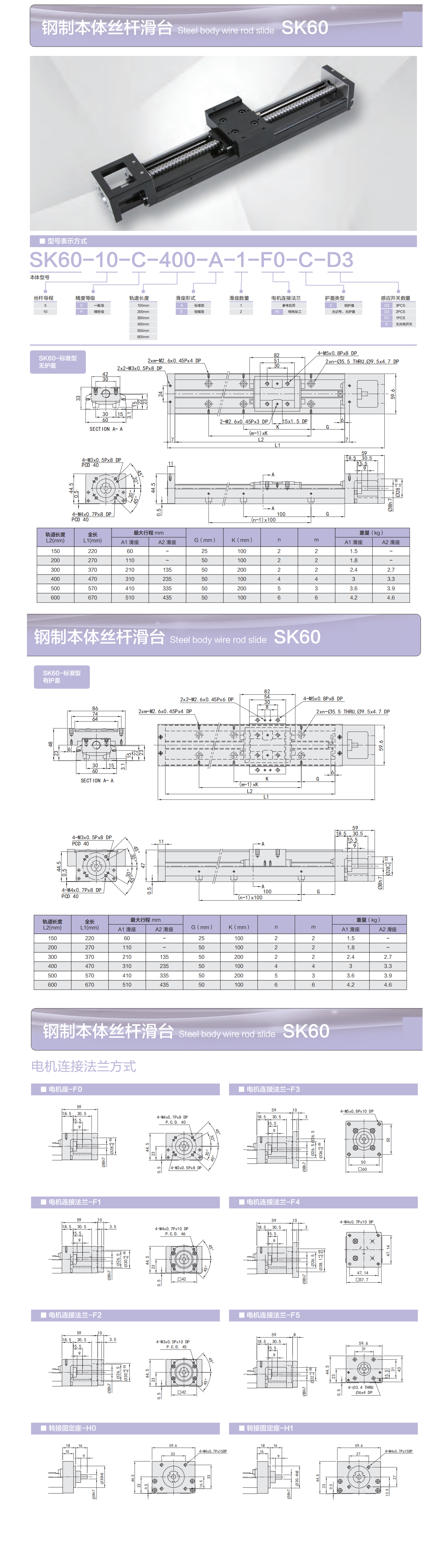 钢制本体丝杆滑台 Steel body wire rod slide SK60