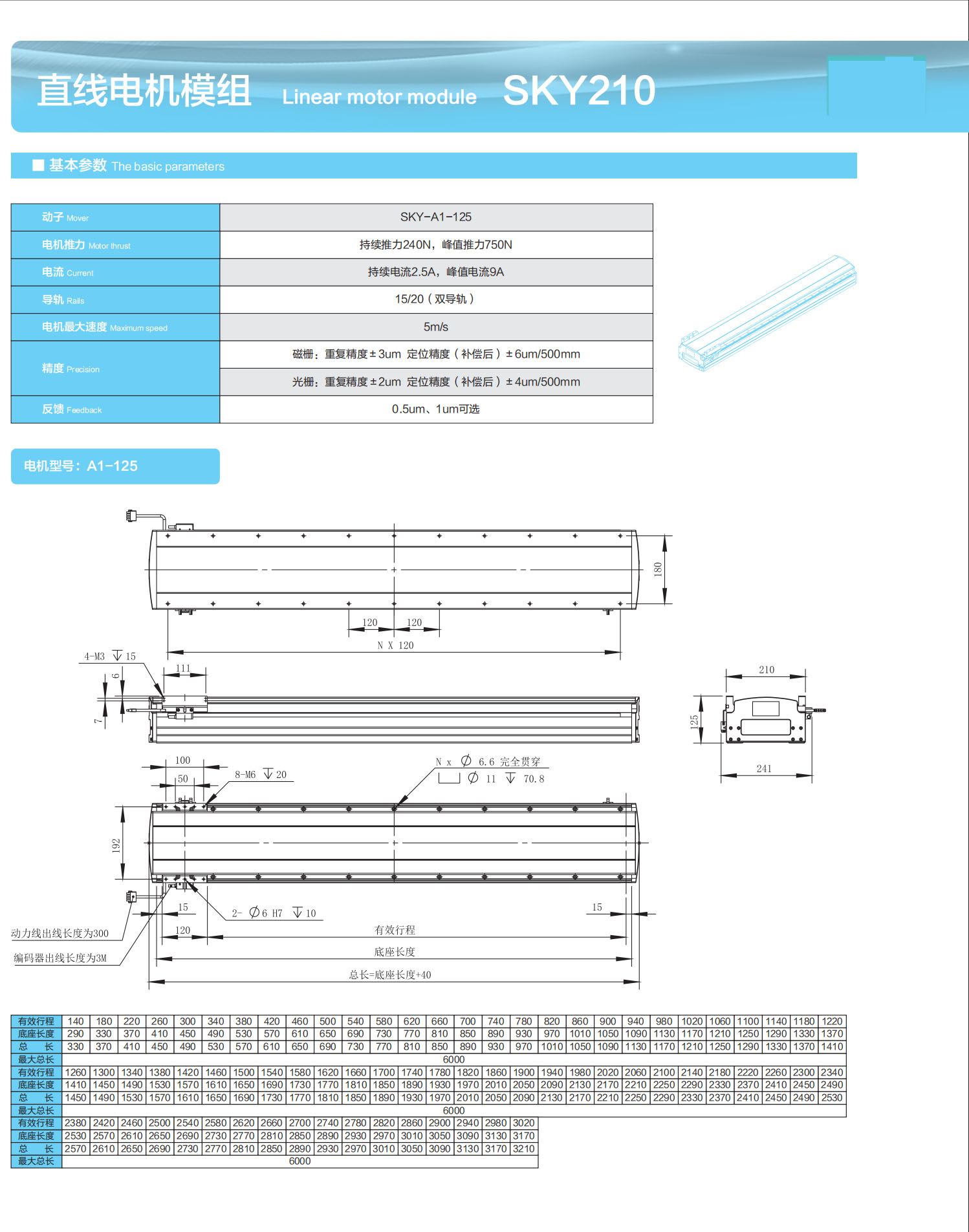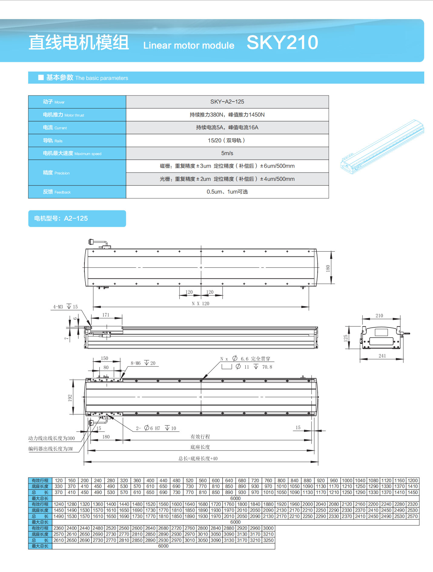 直线电机模组 Linear motor module SKY210