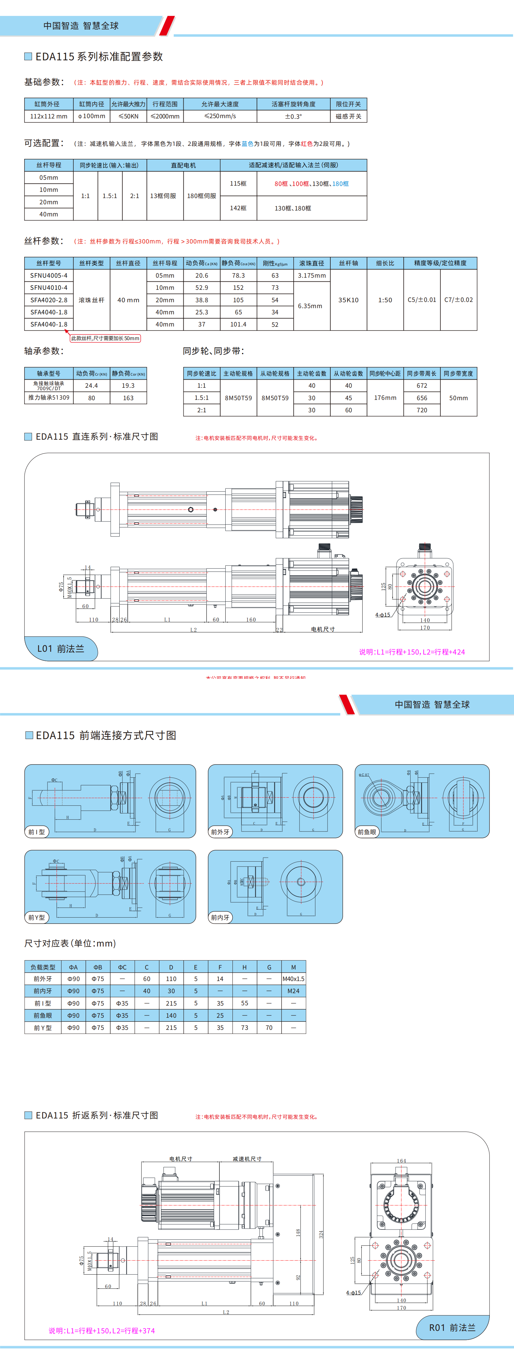 EDA115系列折返式电动缸 直线式电动缸尺寸图
