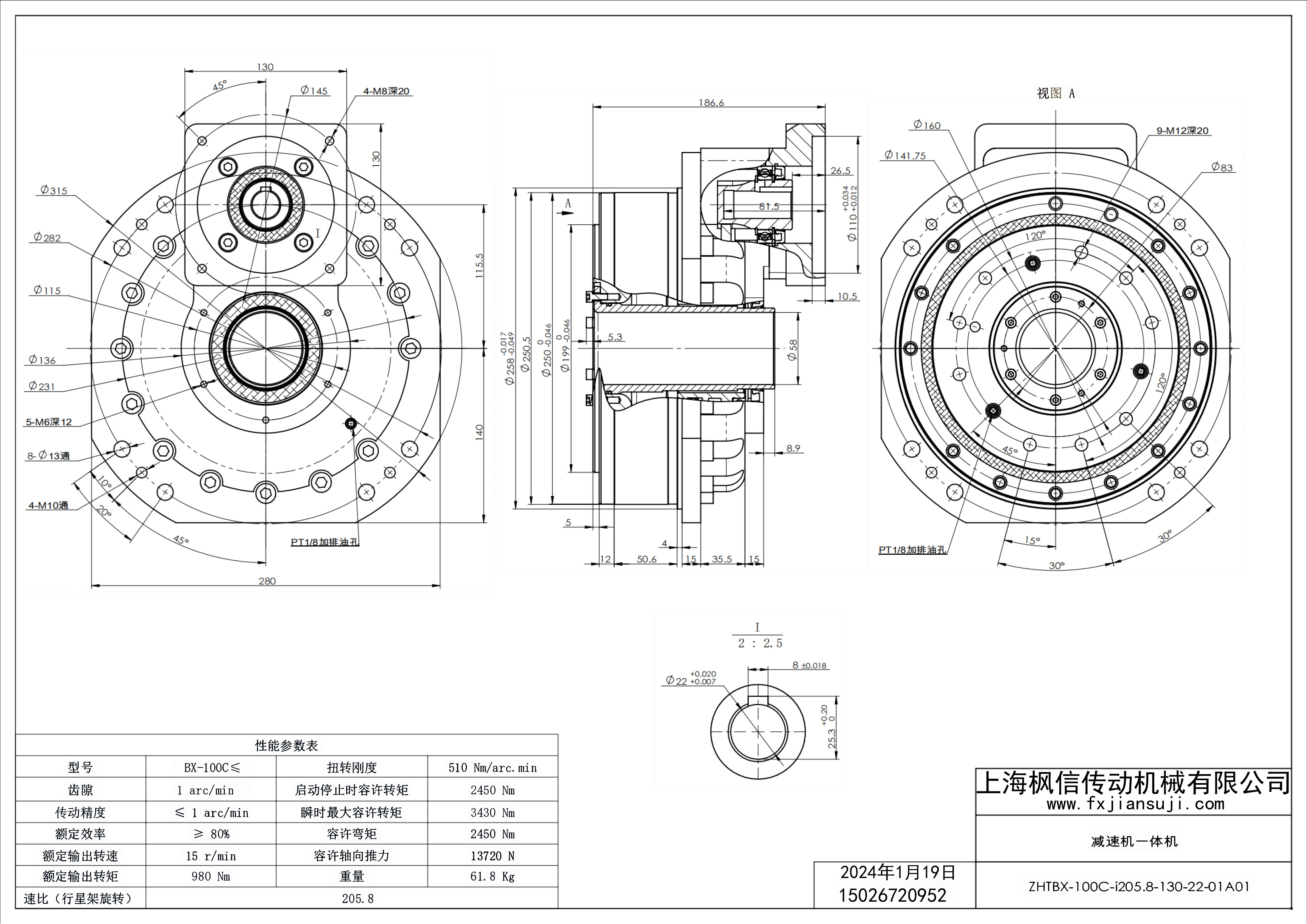 机器人减速机一体机ZHTBX-100C-i147-130-22-01A01_减速机一体机