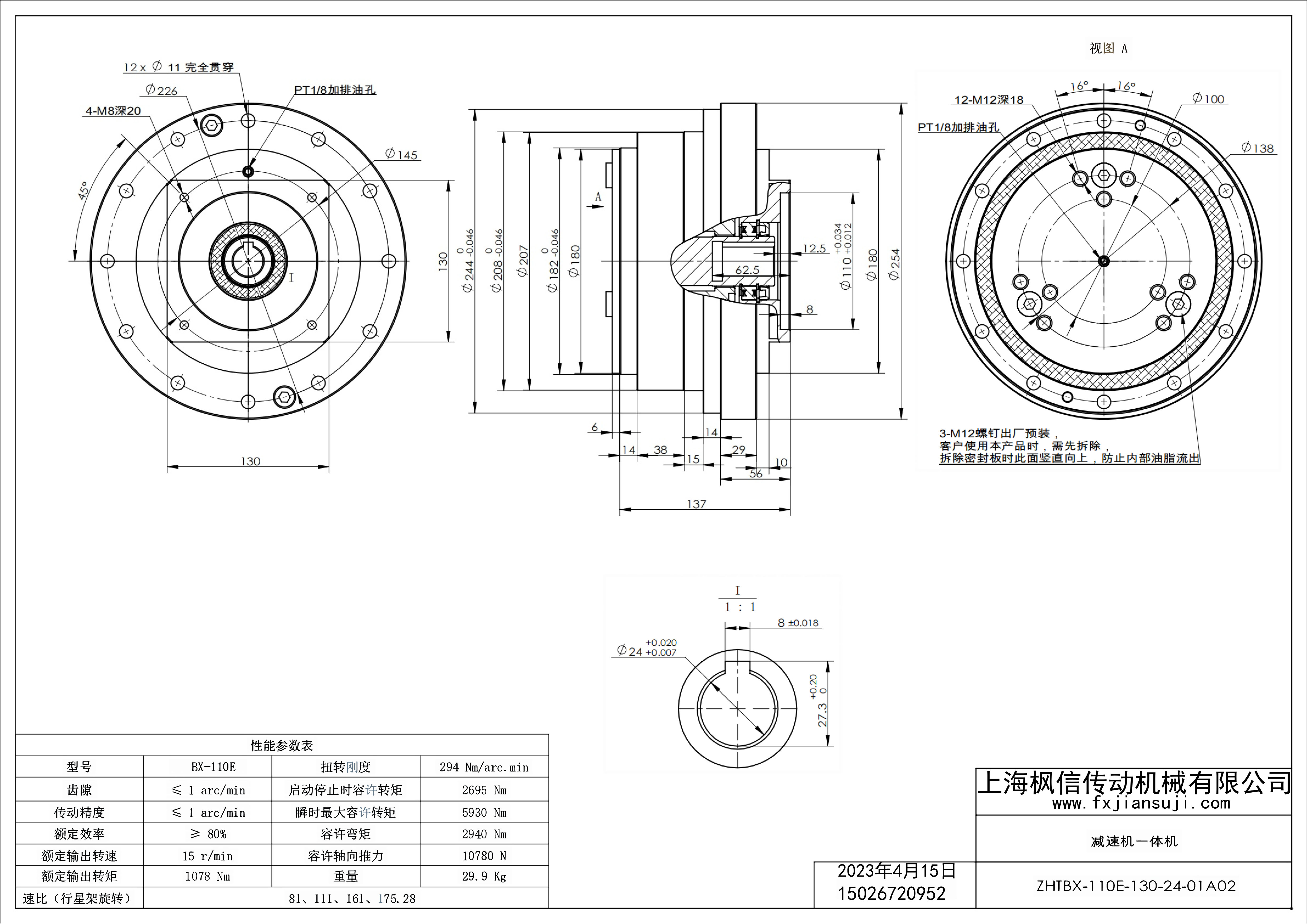 机器人减速机一体机ZHTBX-110E-130-19-01A02_减速机一体机