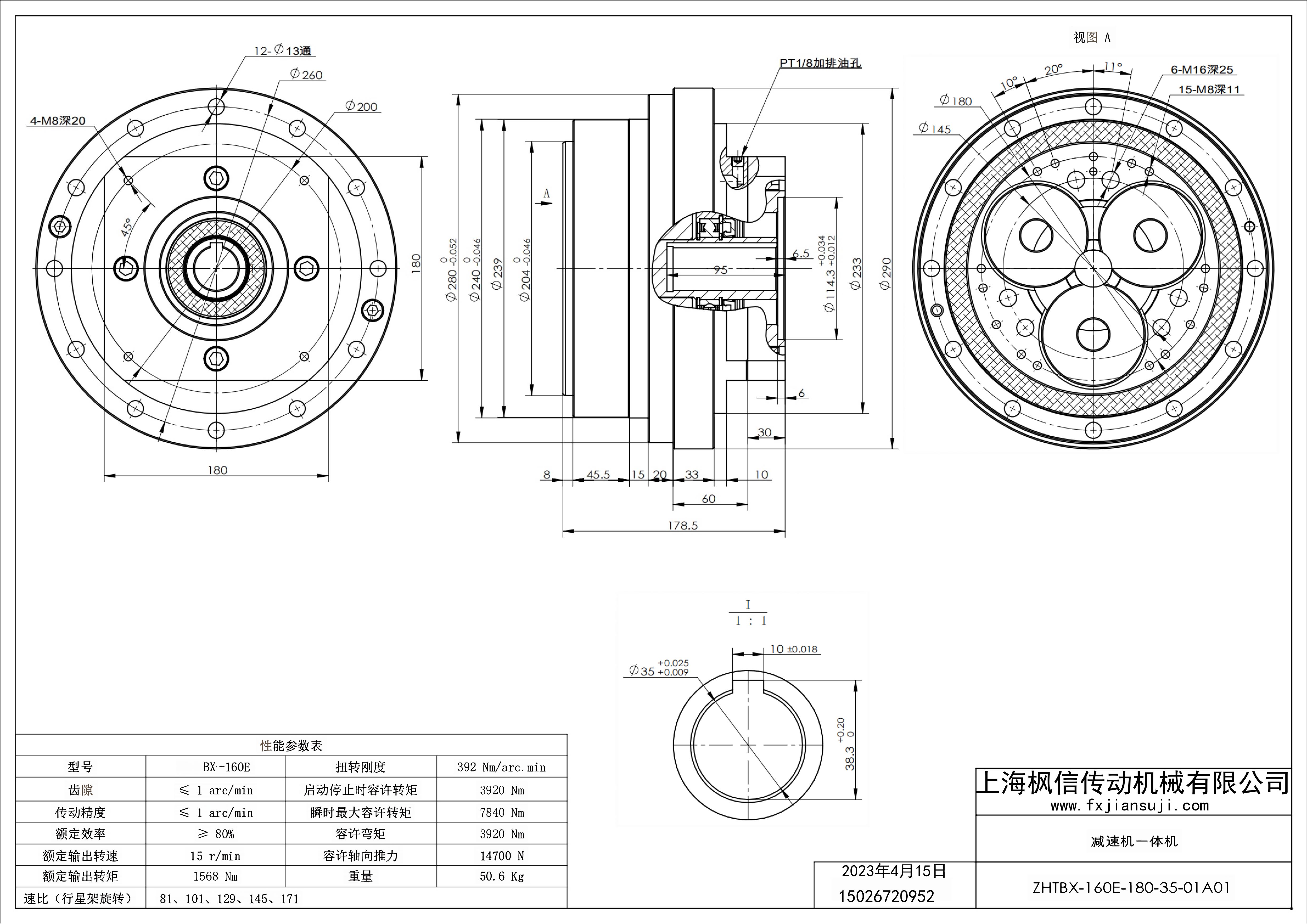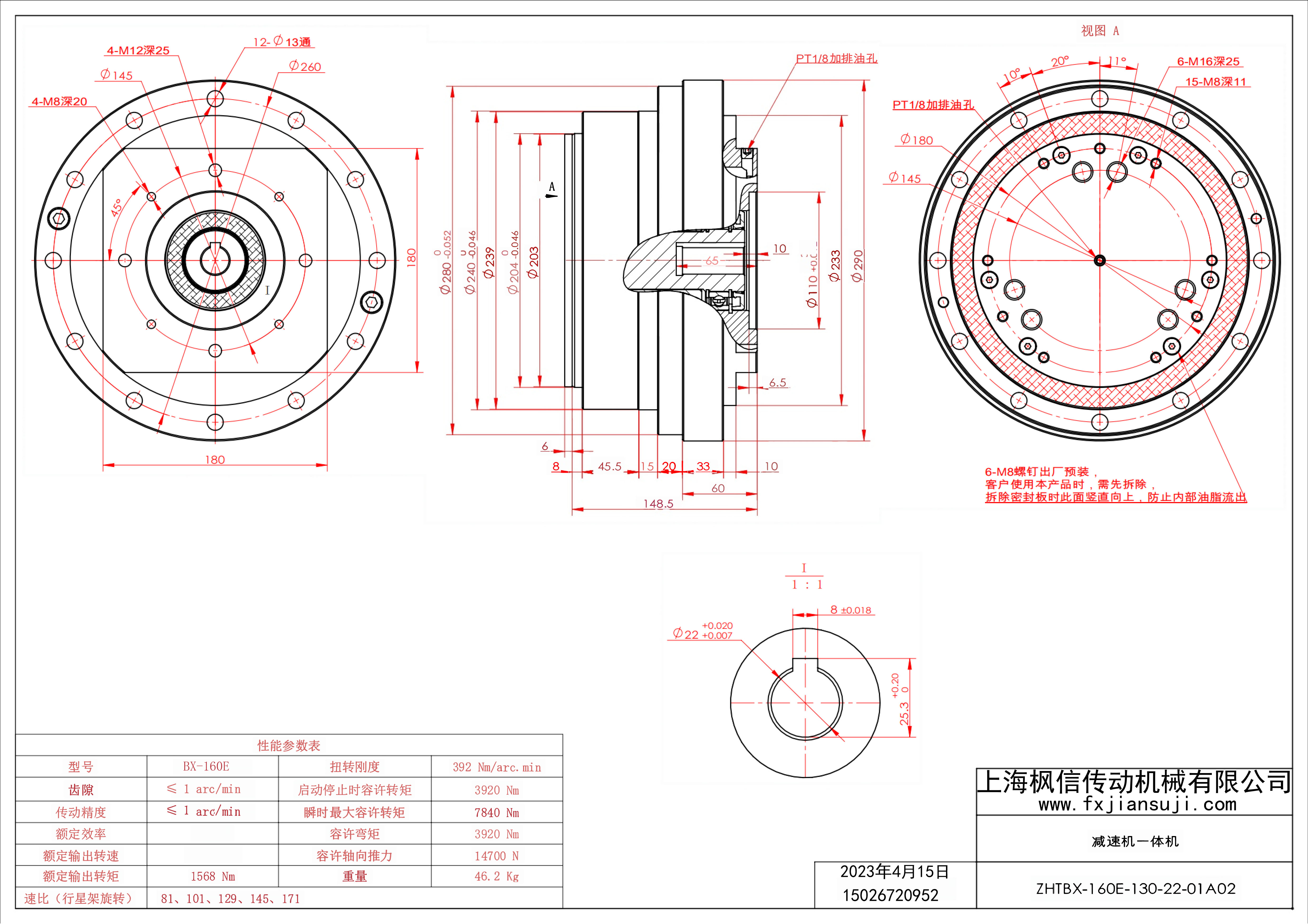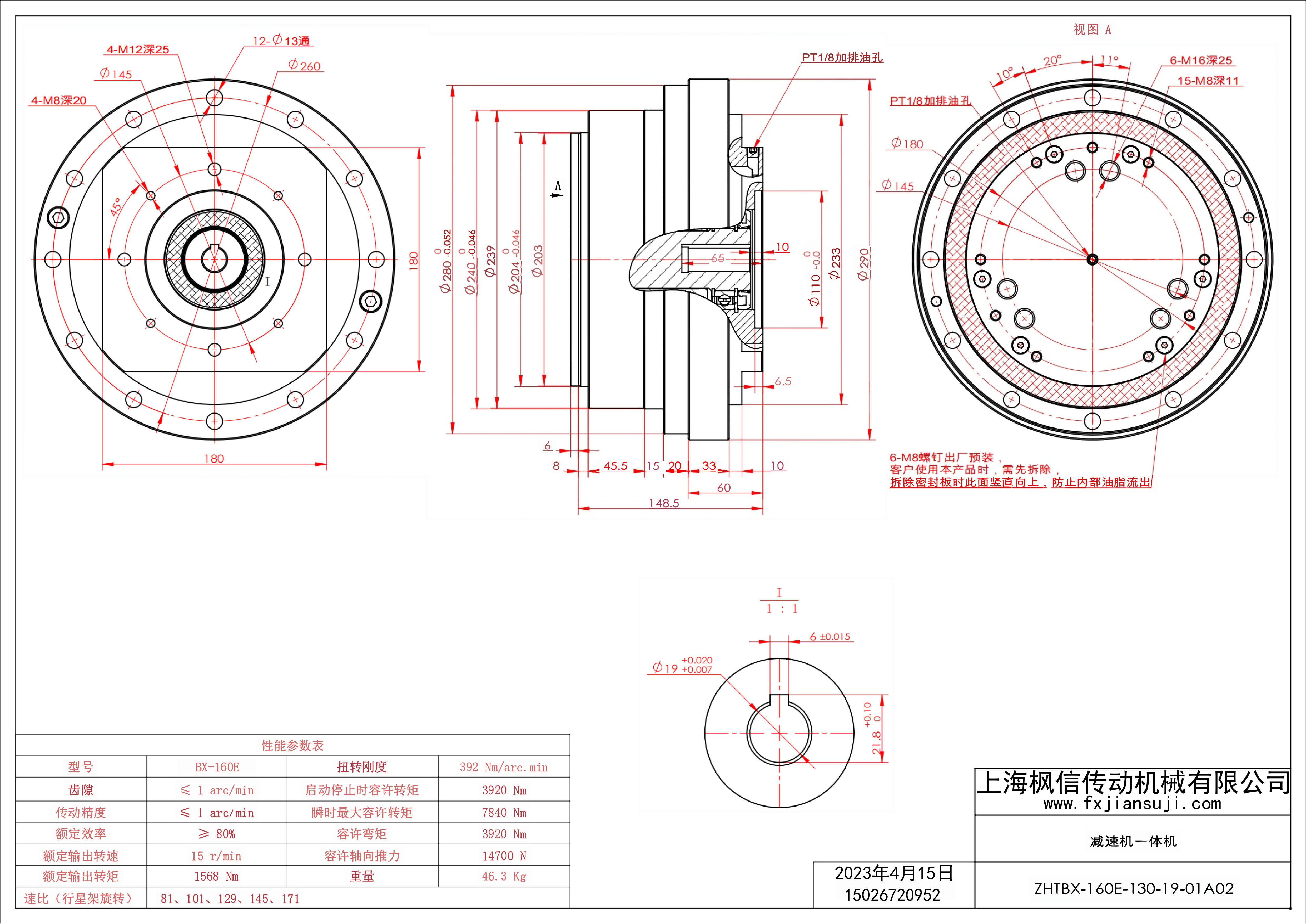 机器人减速机一体机ZHTBX-160E-130-19-01A02_减速机一体机