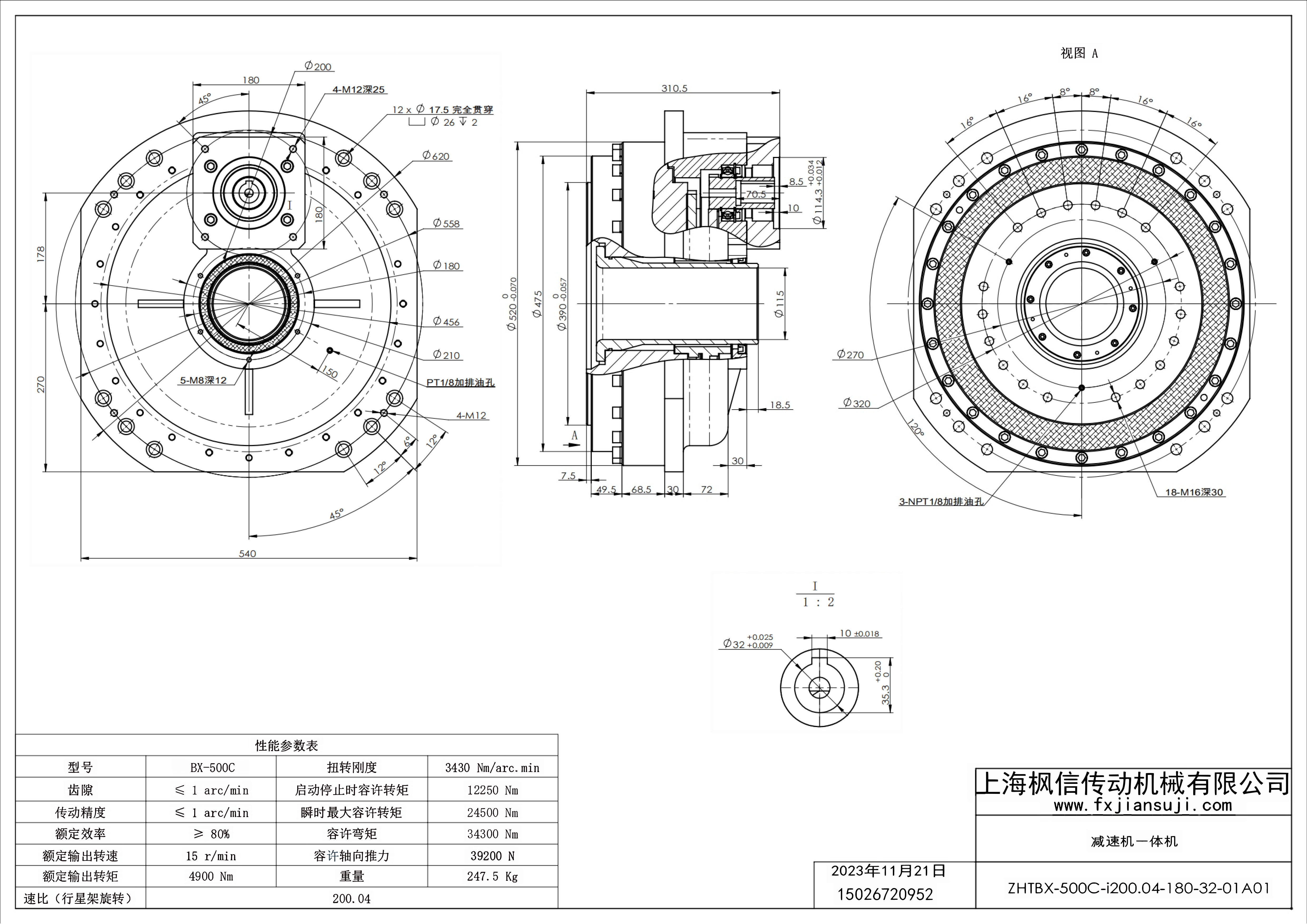 机器人减速机一体机ZHTBX-500C-i200.04-180-32-01A01_减速机一体机