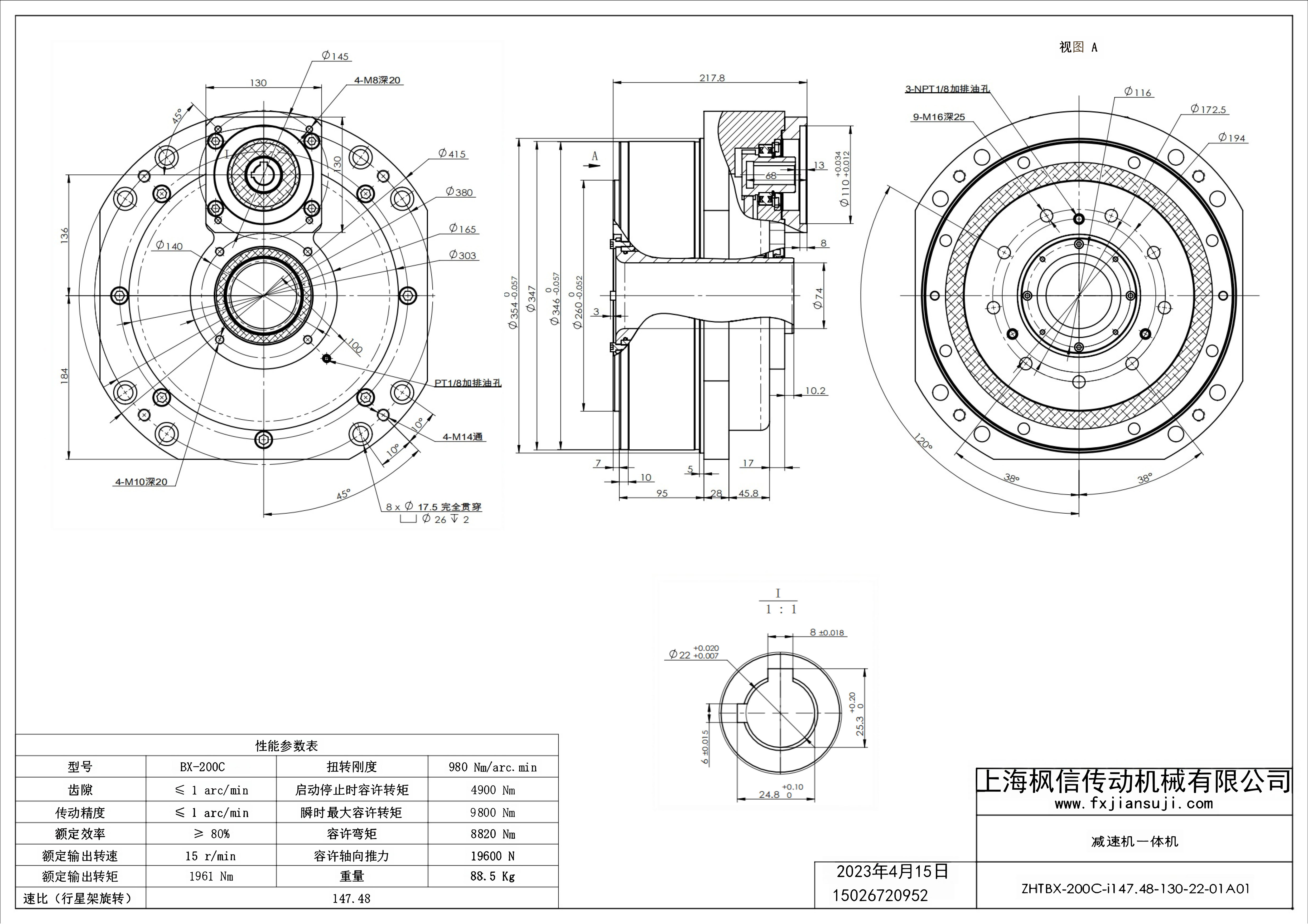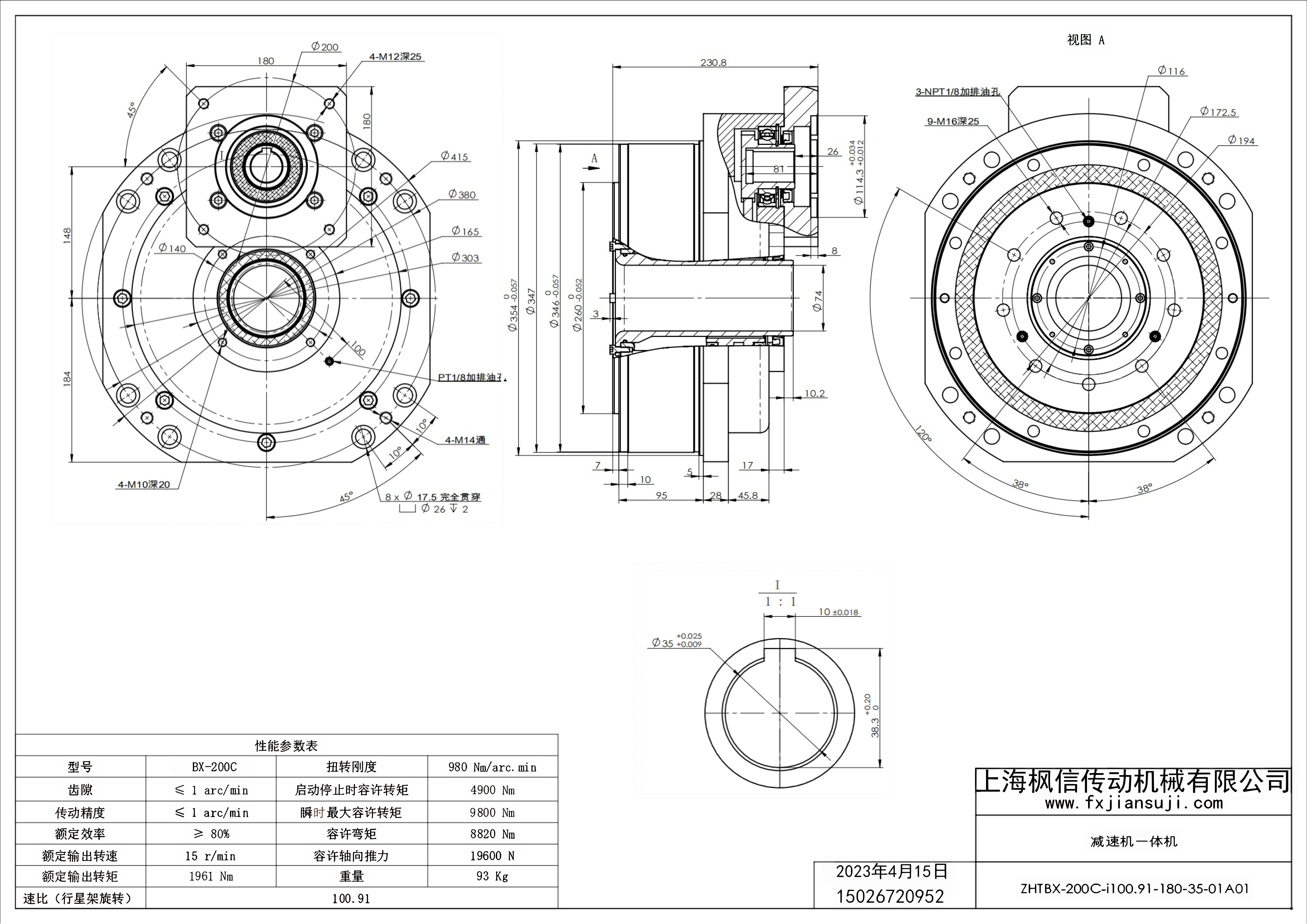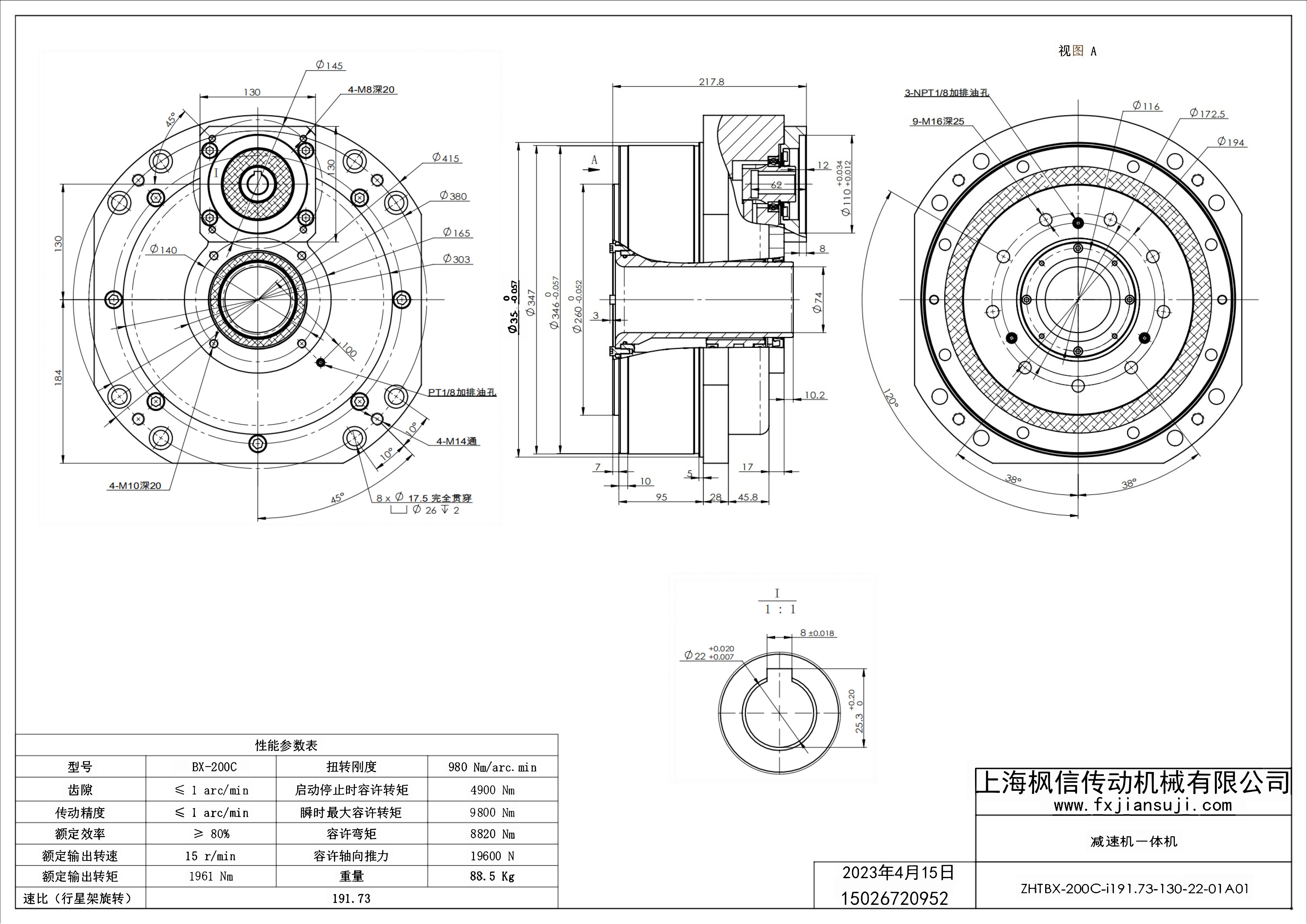 机器人减速机一体机ZHTBX-200C-i100.91-130-22-01A01_减速机一体机