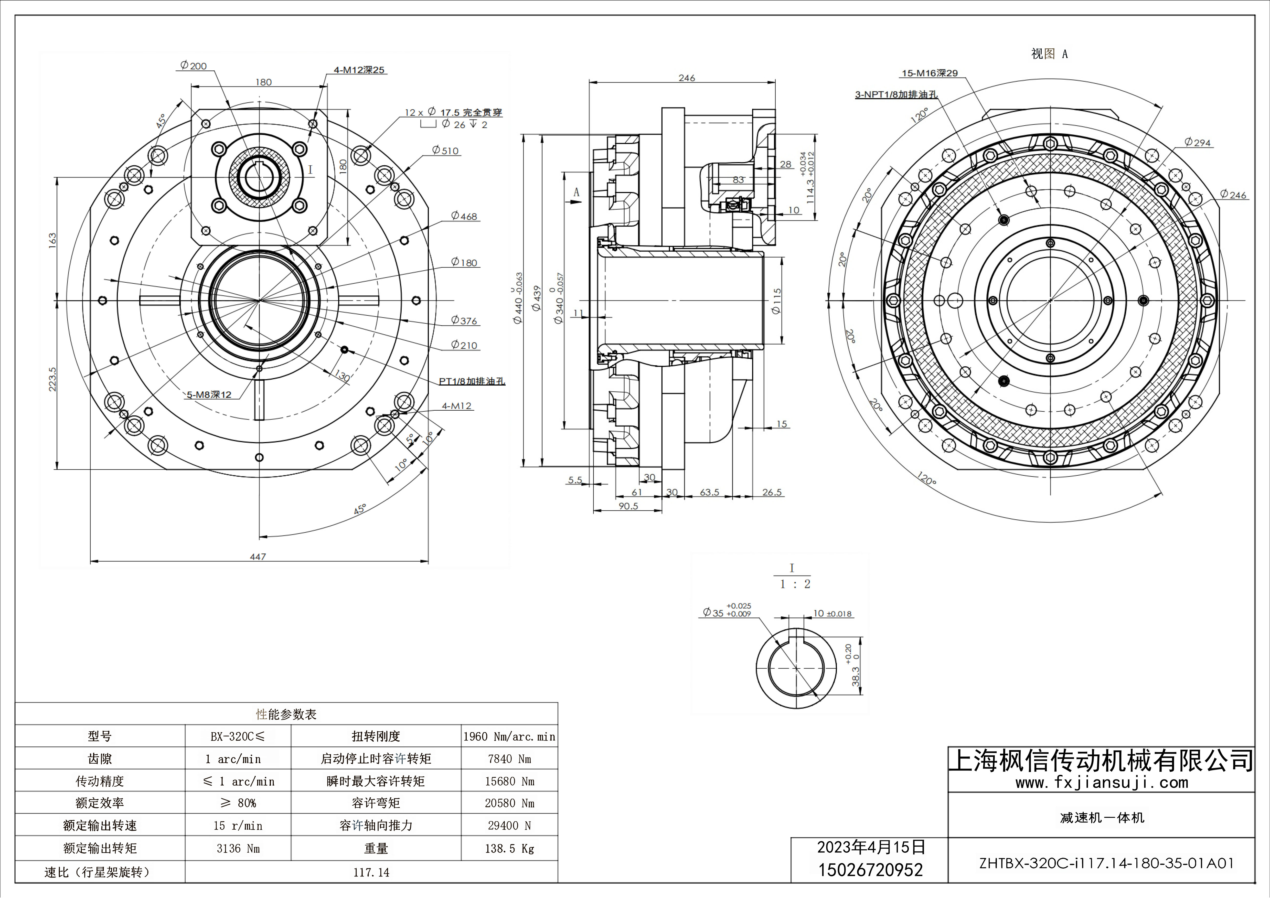 机器人减速机一体机ZHTBX-320C-i117.14-180-35-01A01_减速机一体机
