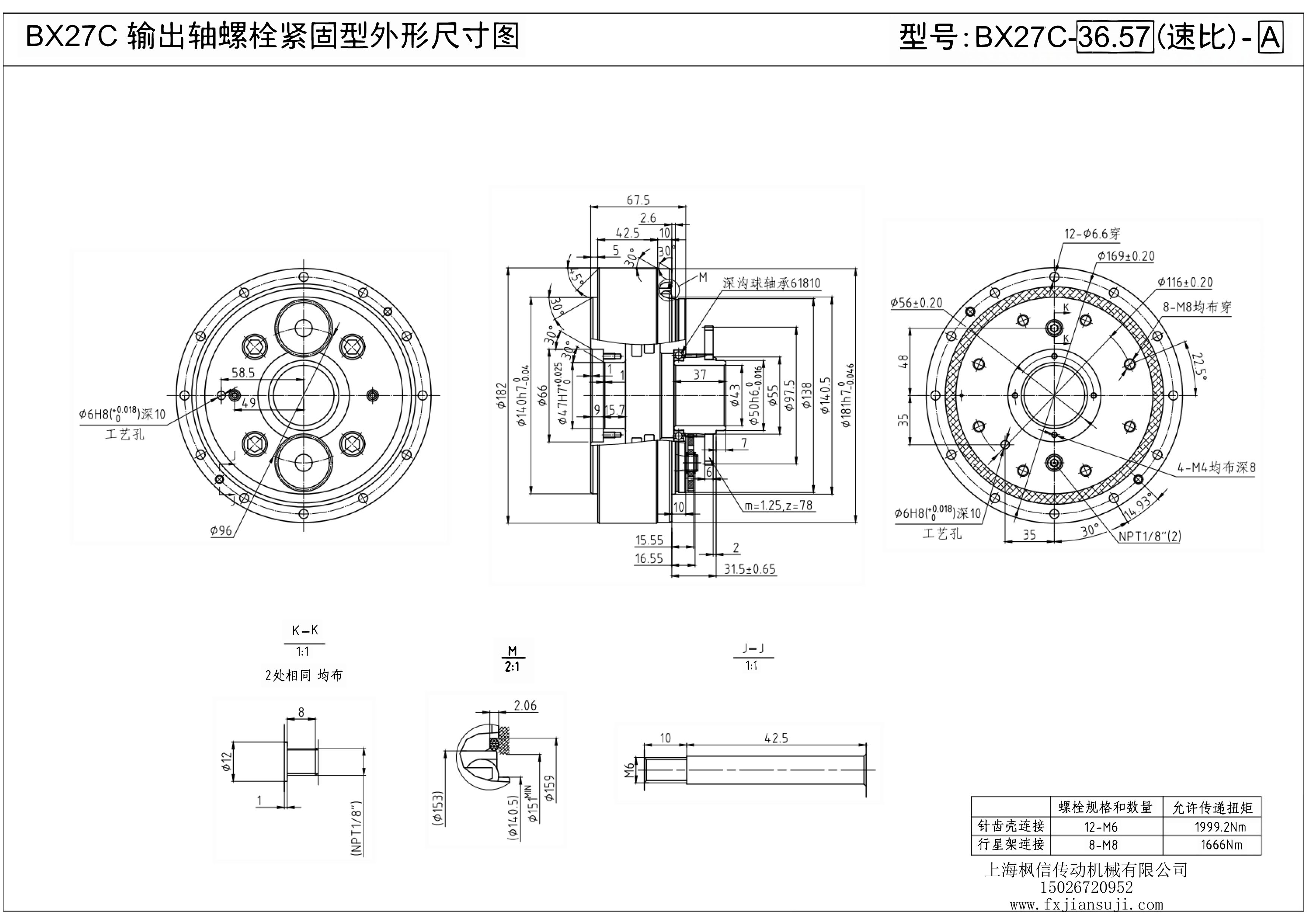 机器人减速机BX27C输出轴螺栓紧固型外形尺寸图
