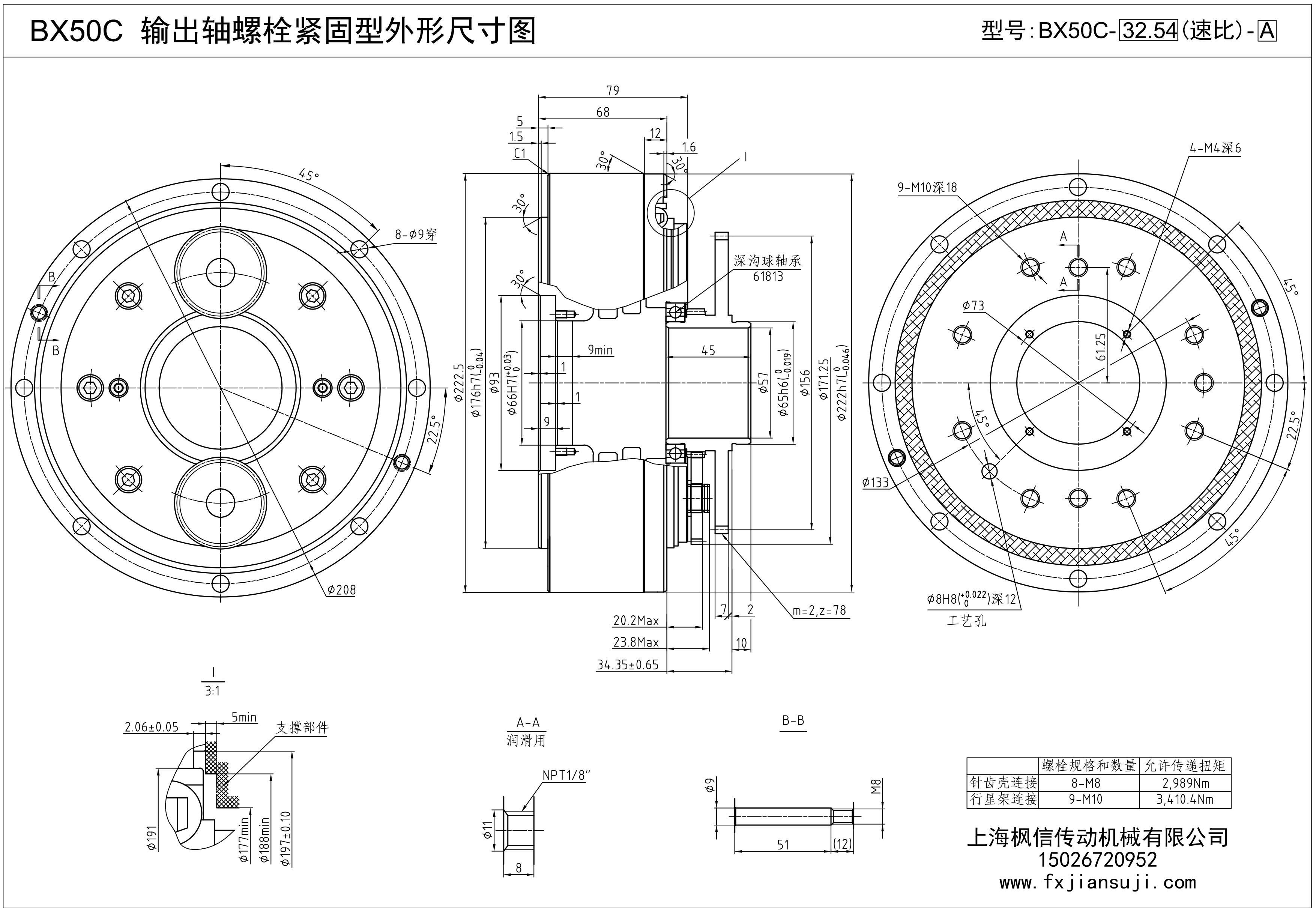 机器人减速机BX50C输出轴螺栓紧固型外形尺寸图
