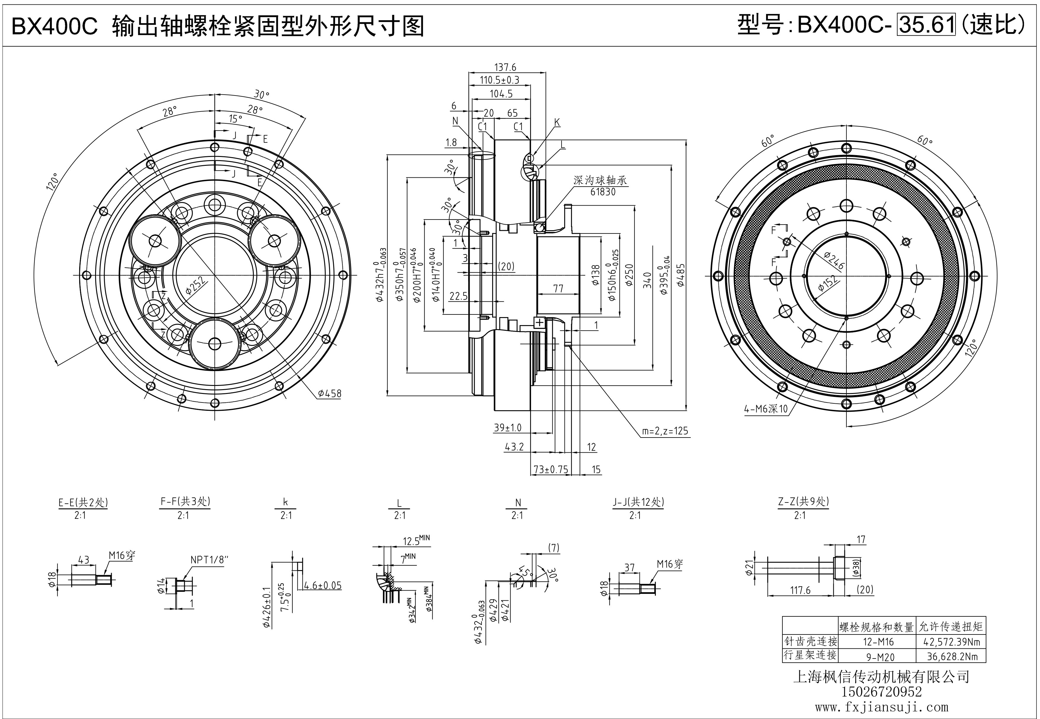 机器人减速机BX400C输出轴螺栓紧固型外形尺寸图