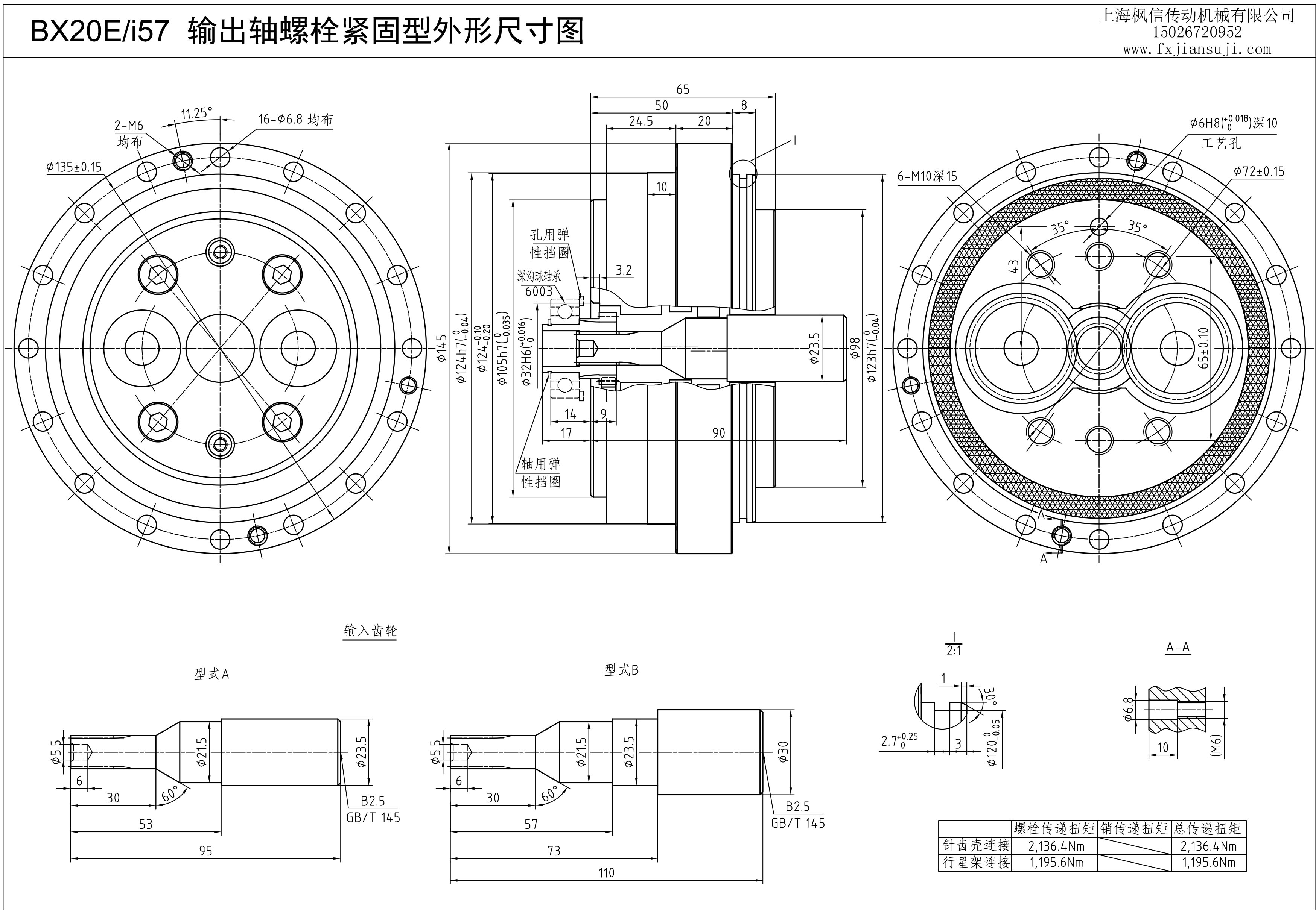 机器人减速机BX20E/i57输出轴螺栓紧固型外形尺寸图