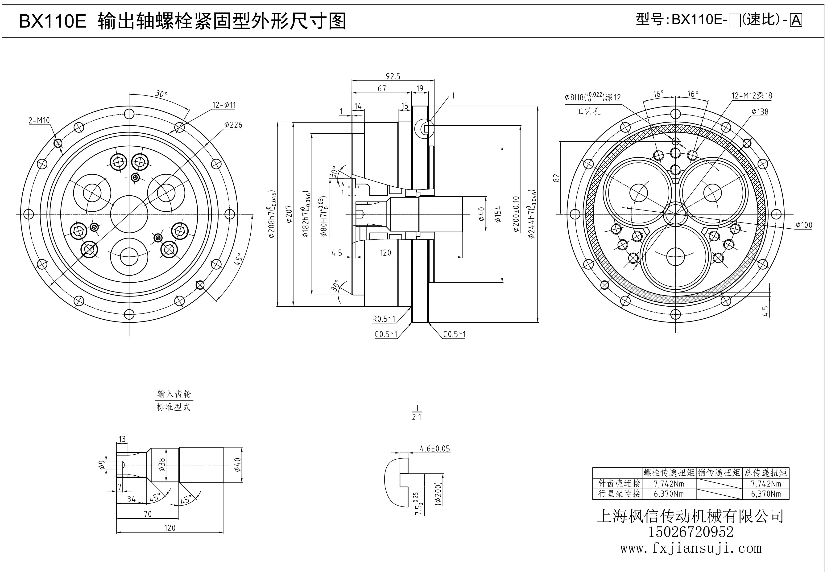 机器人减速机BX110E输出轴螺栓紧固型外形尺寸图