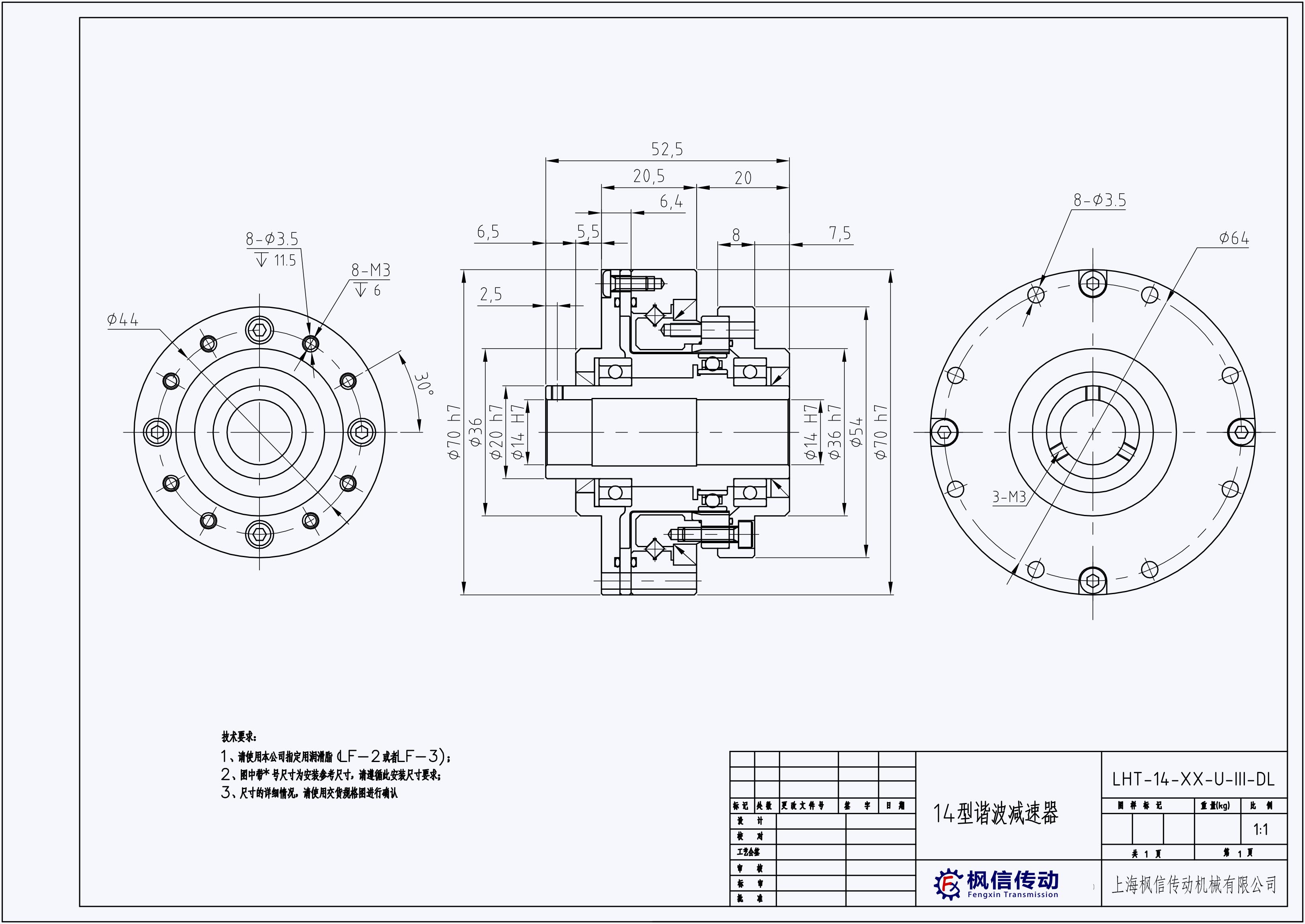 伺服电机谐波减速机LHT-14-XX-U-III-DL LHT-17-XX-U-III-DL LHT-20-XX-U-III-DL
