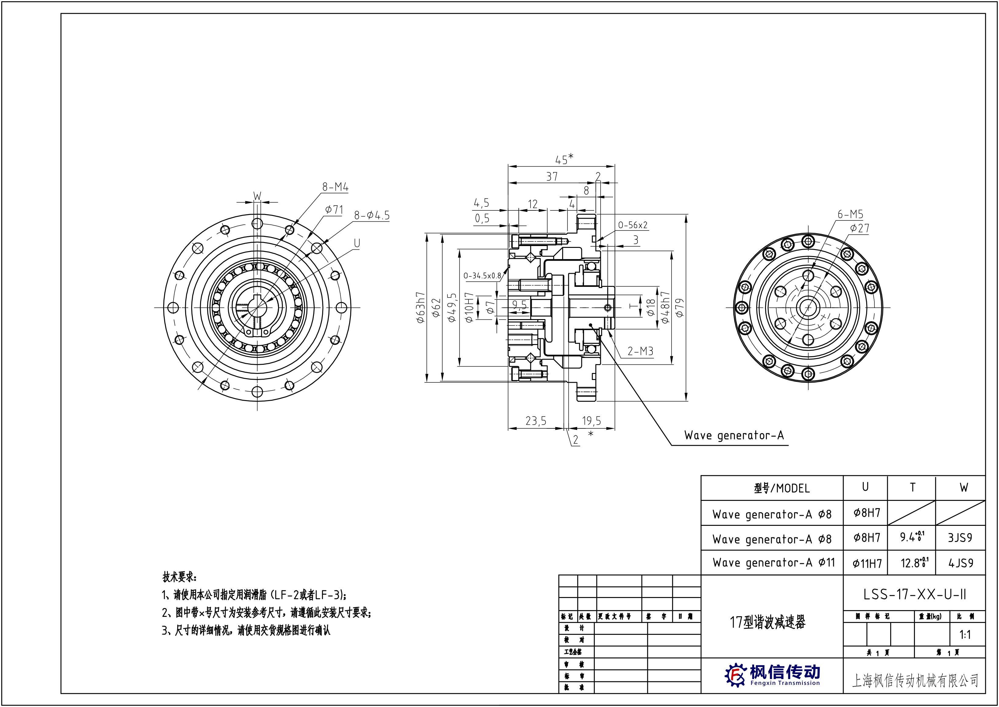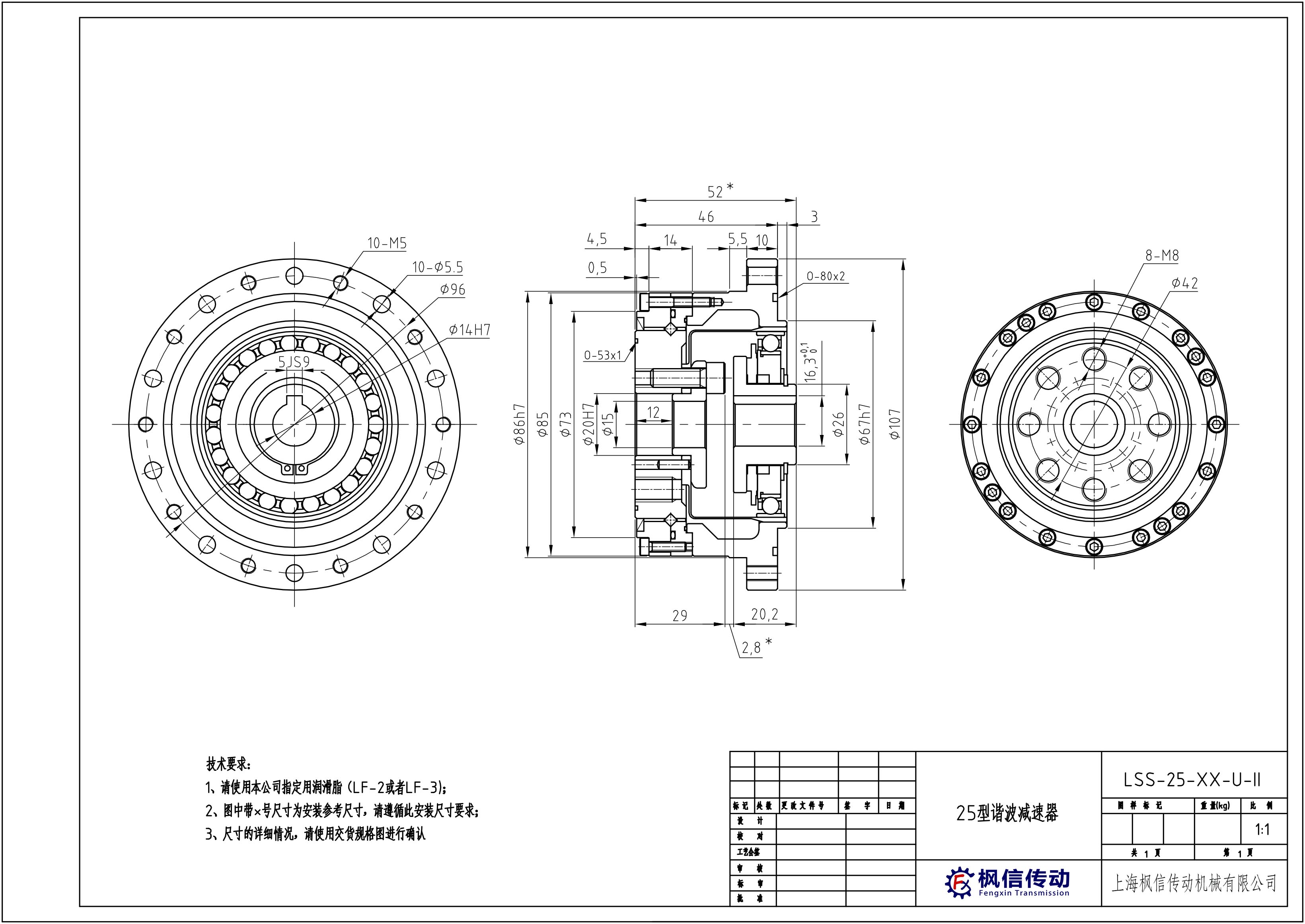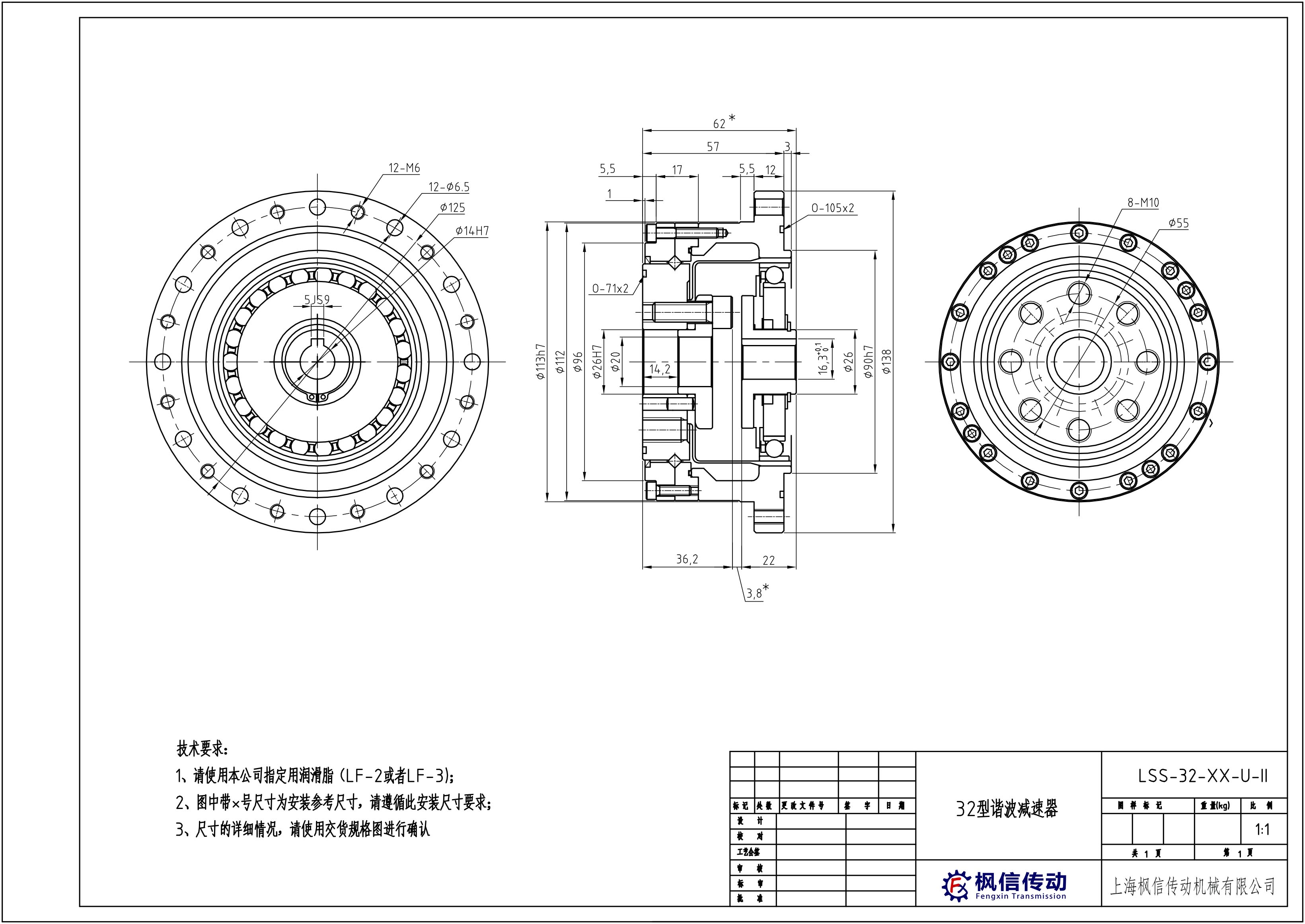 伺服电机谐波减速机LSS-14-XX-U-II LSS-17-XX-U-II LSS-20-XX-U-II LSS-25-XX-U-II LSS-32-XX-U-II