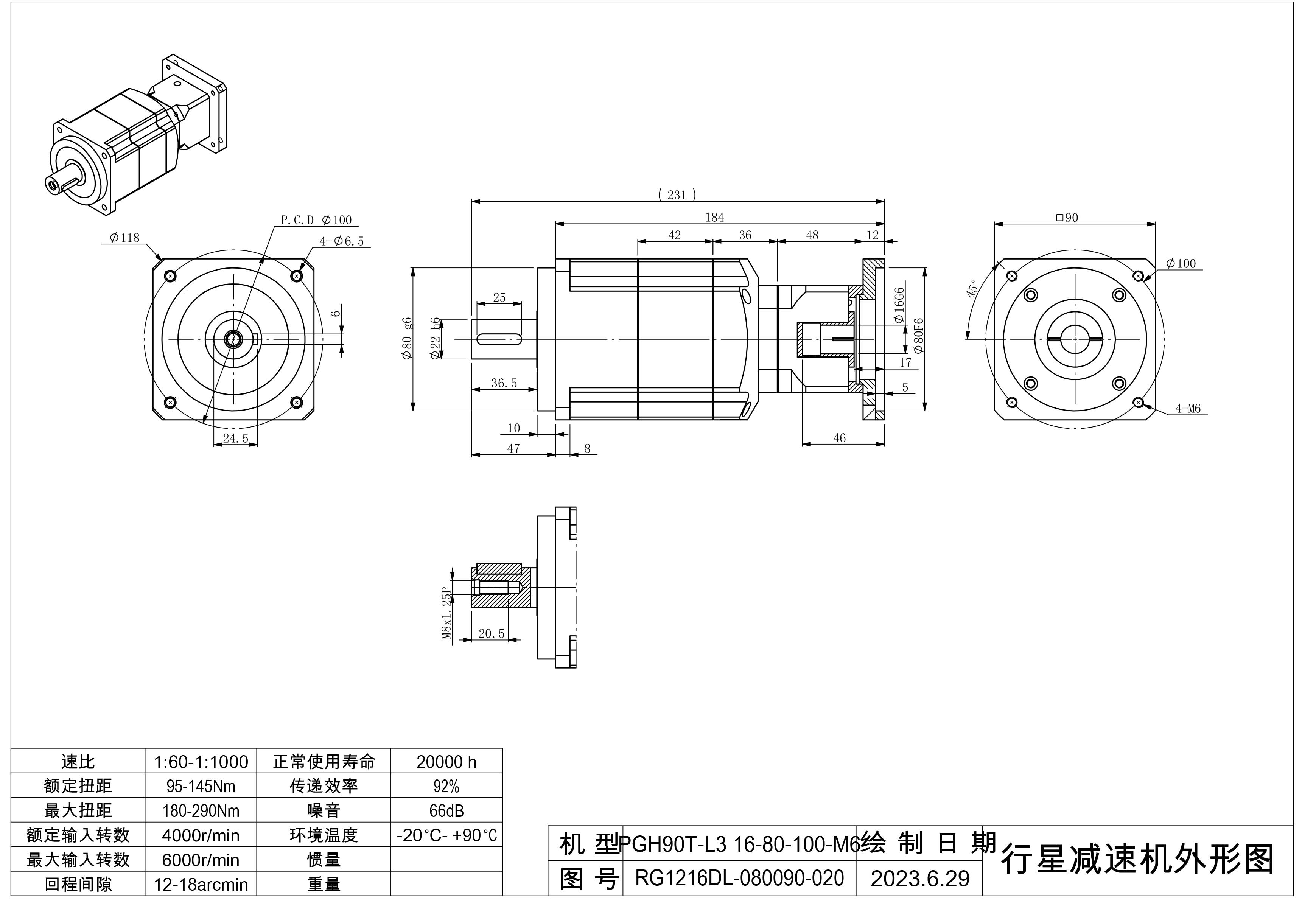 KB系列伺服行星减速机PGH090T-L3 16-80-100-M6 PGH090T-L3 16-80-100-M6-5B