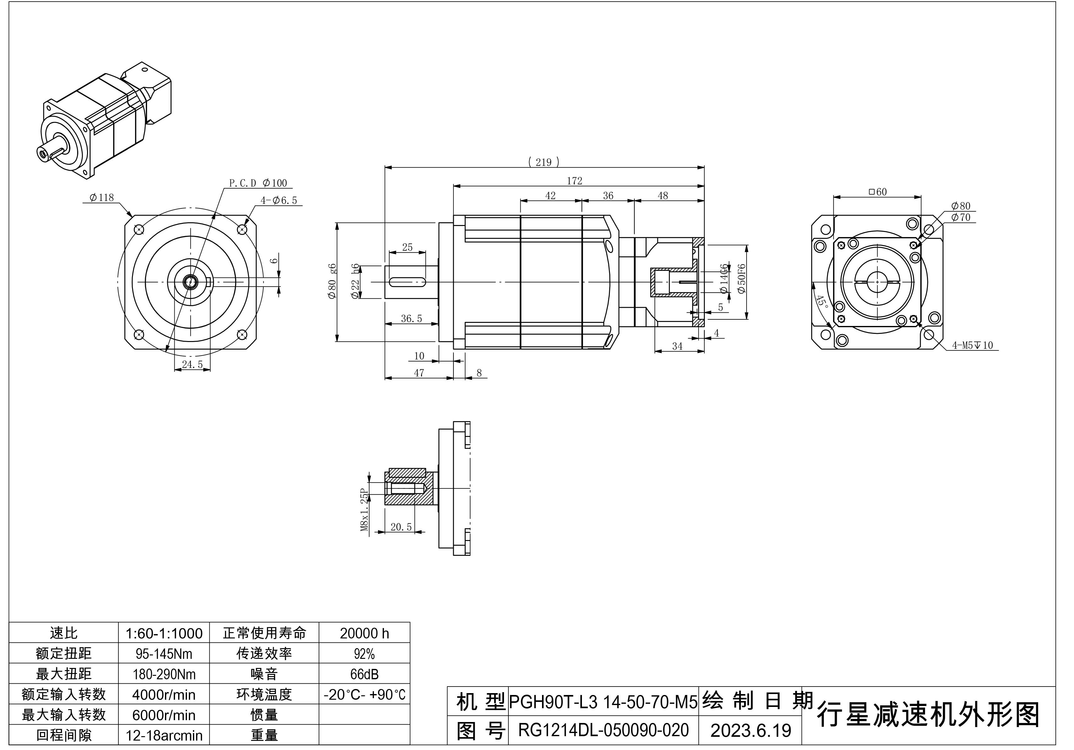KB系列伺服行星减速机PGH090T-L2 14-50-70-M4 PGH090T-L3 14-50-70-M4 PGH090T-L2 14-50-70-M5 PGH090T-L3 14-50-70-M5