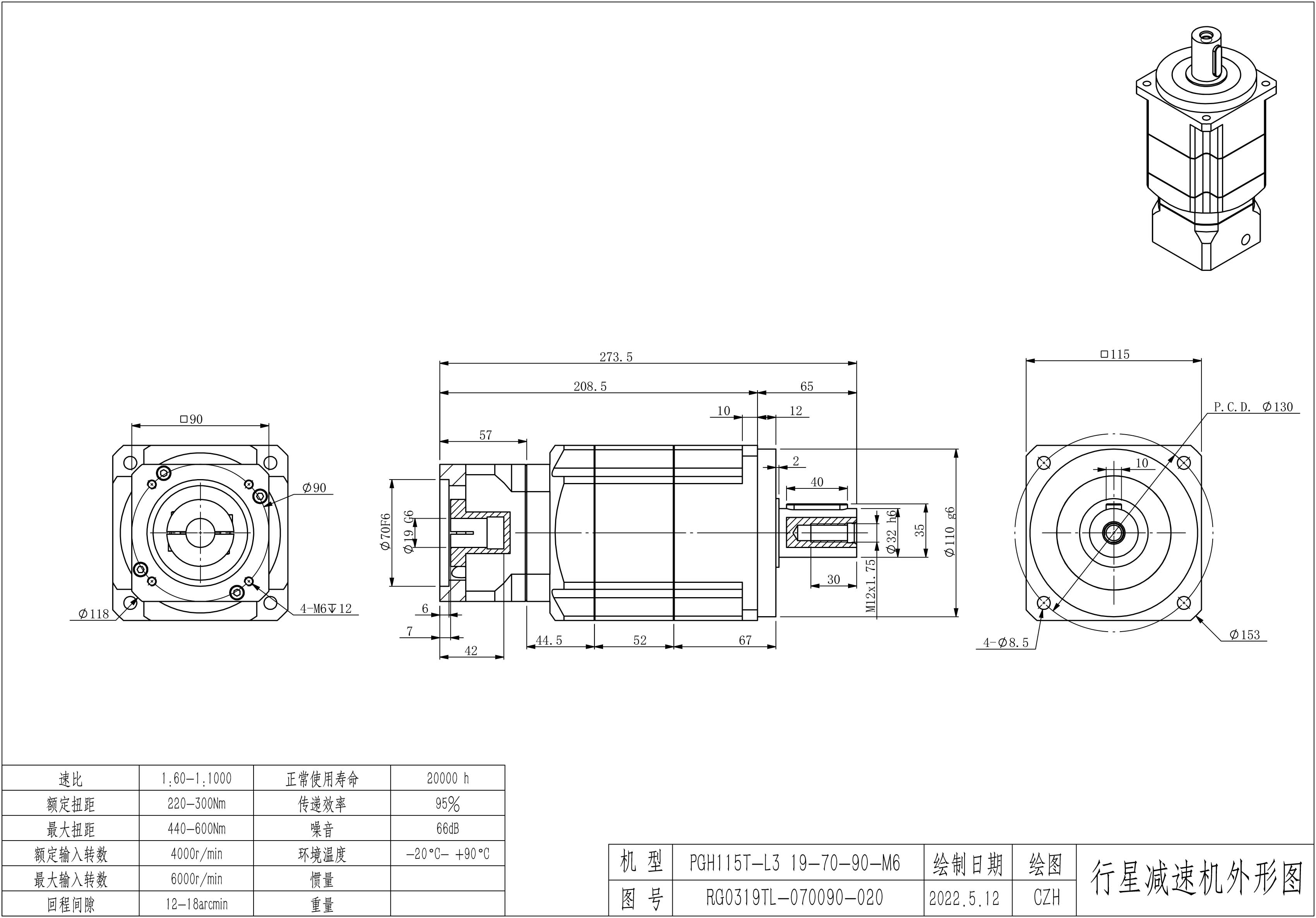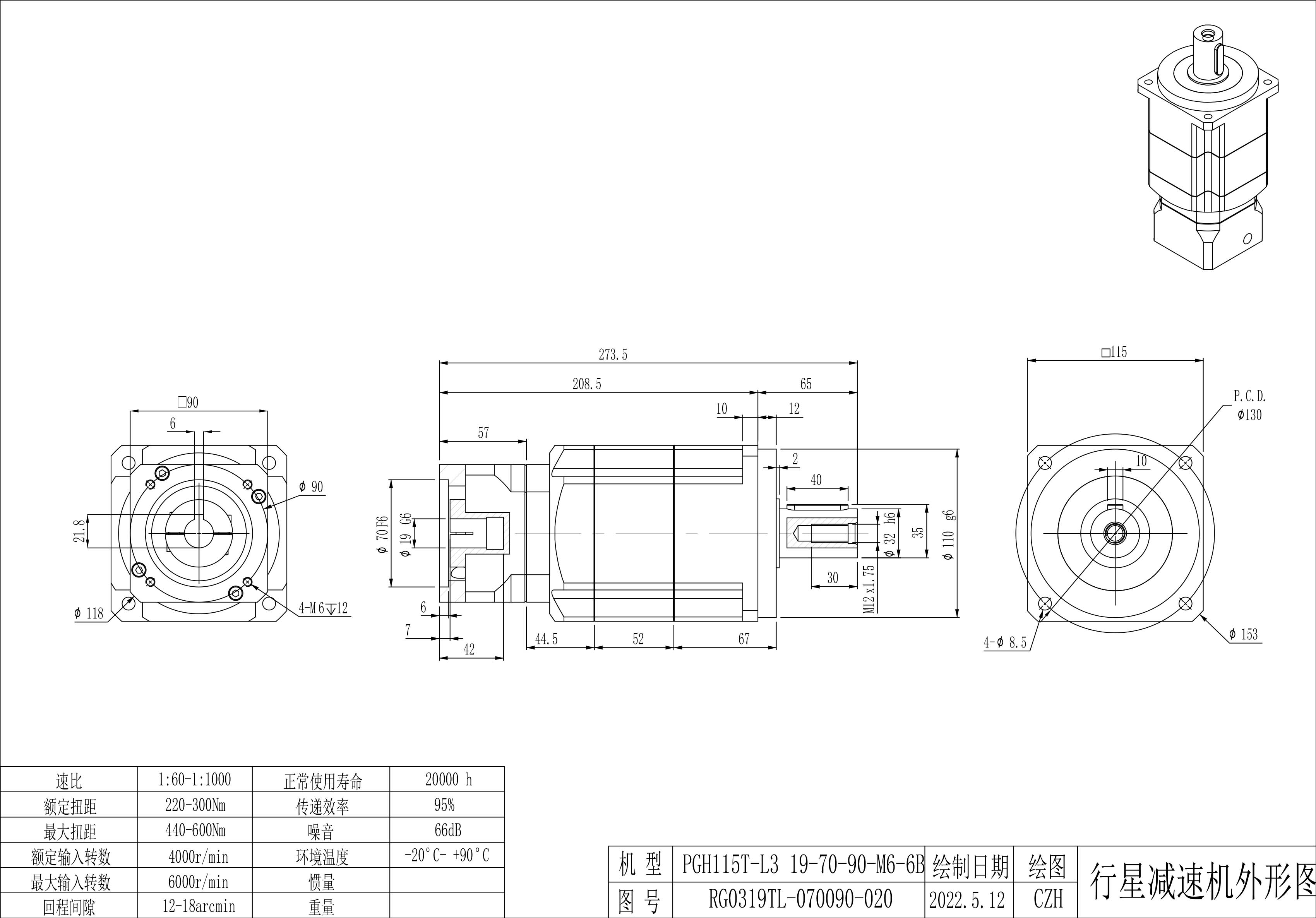 KB系列伺服行星减速机PGH115T-L3 19-70-90-M5 PGH115T-L3 19-70-90-M6 PGH115T-L3 19-70-90-M6-6B 孔PGH115T-L3 19-70-90-M6-6B-KCZ22(标准)