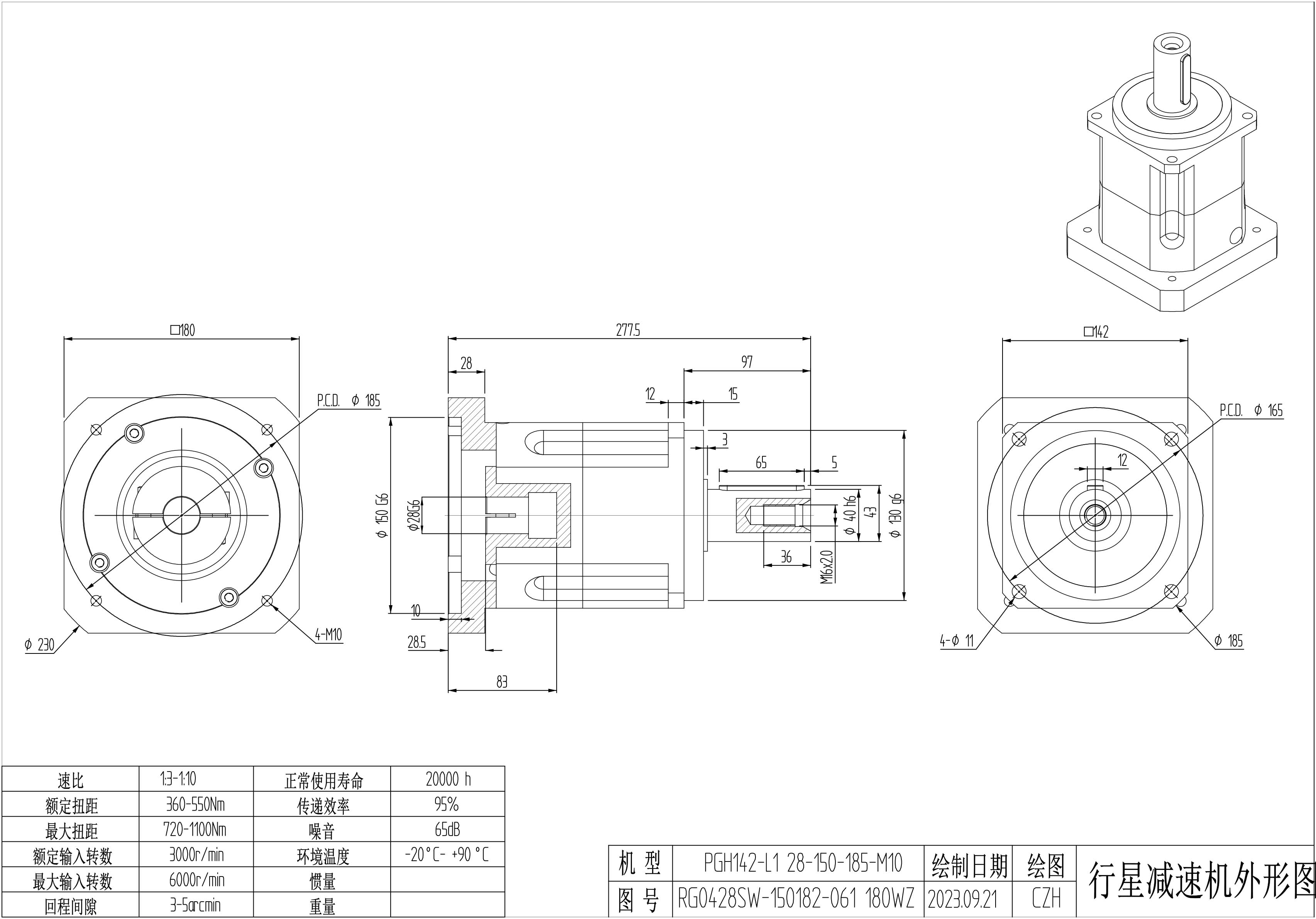 KB系列伺服行星减速机PGH142-L1 28-150-185-M10 PGH142-L2 28-150-185-M10