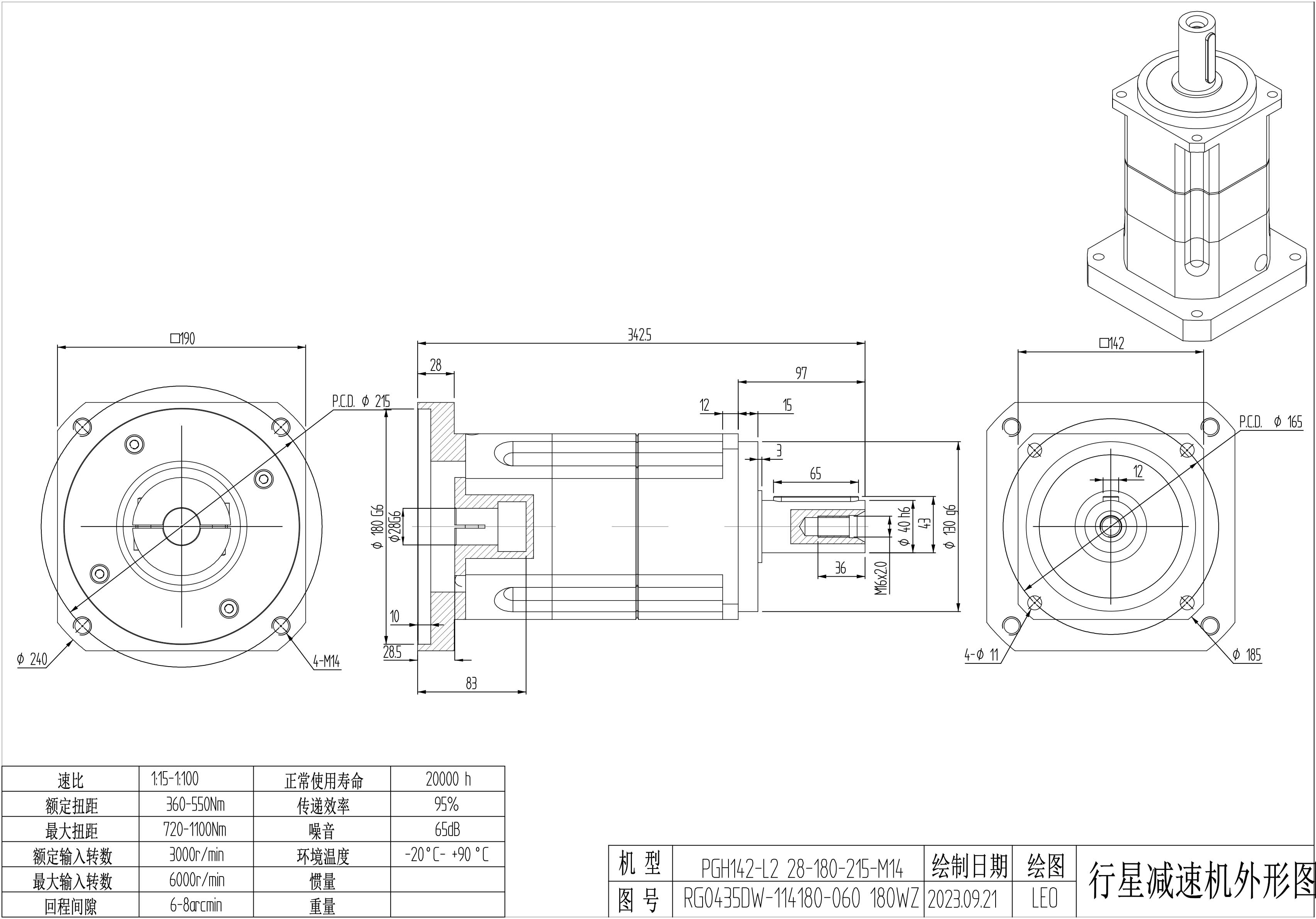 KB系列伺服行星减速机PGH142-L1 28-180-215-M14 LR83 PGH142-L2 28-180-215-M14 LR83