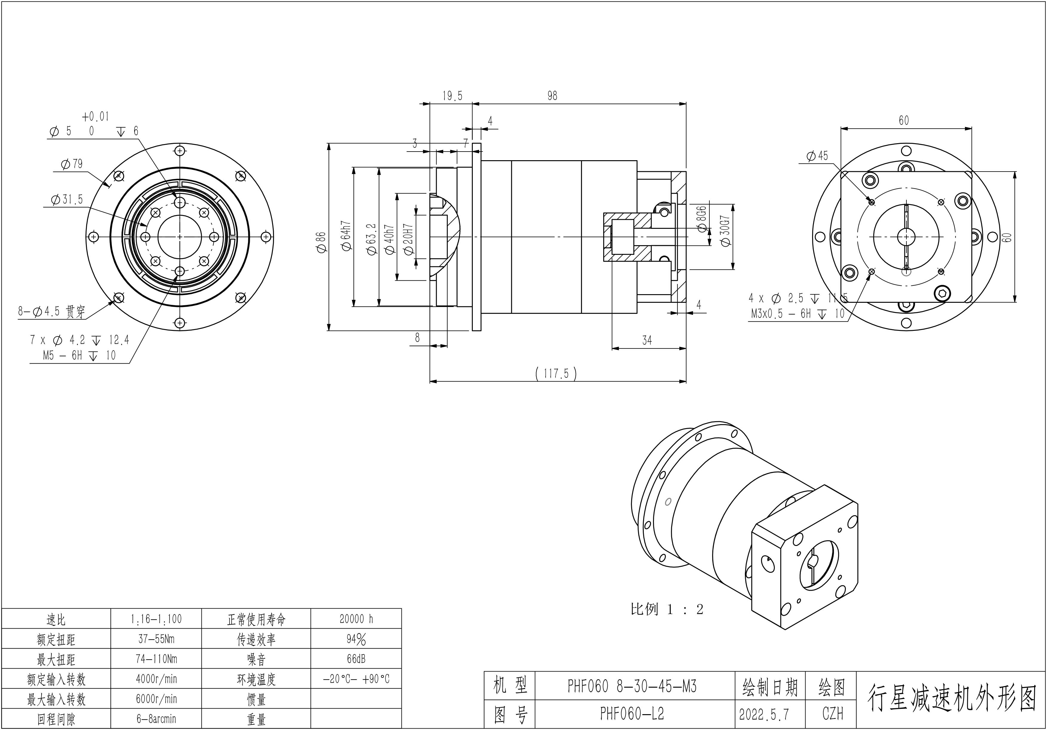 KB系列伺服行星减速机PHF060-L1 8-30-45-M3 PHF060-L2 8-30-45-M3