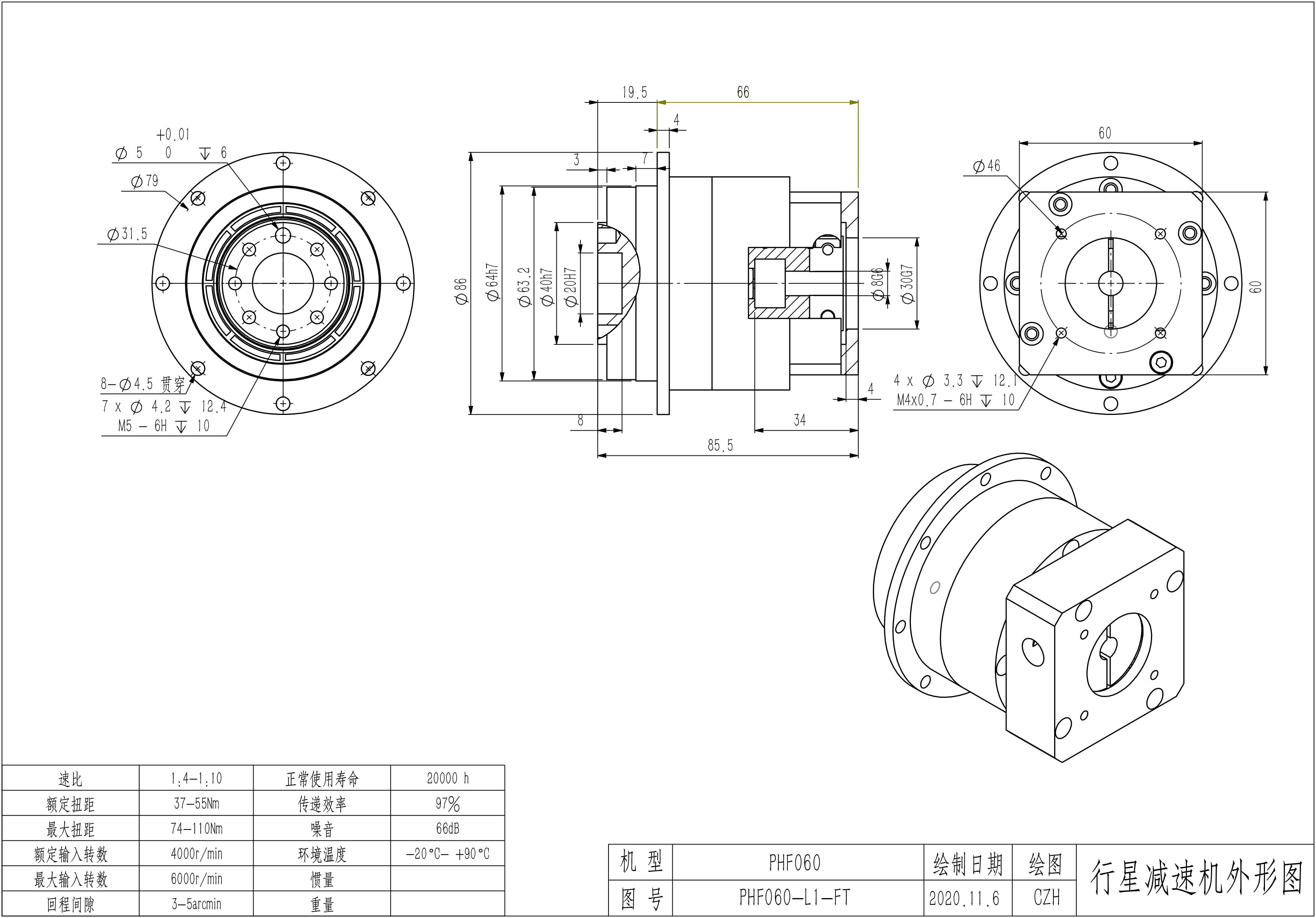 KB系列伺服行星减速机PHF060-L1 8-30-46-M4 PHF060-L2 8-30-46-M4