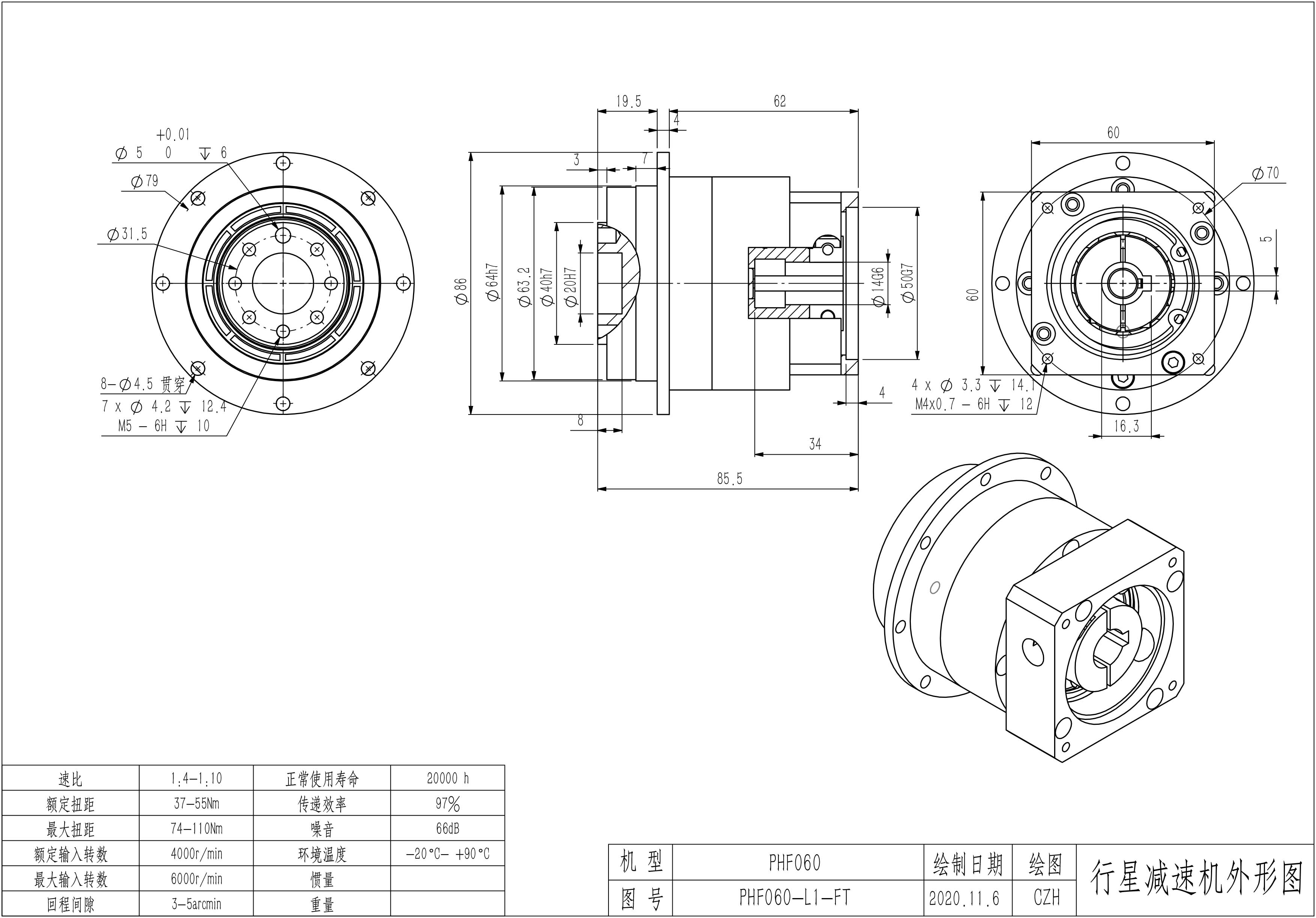 KB系列伺服行星减速机PHF060-L1 14-50-70-M4 PHF060-L1 14-50-70-M4-5B PHF060-L2 14-50-70-M4 PHF060-L2 14-50-70-M4-5B