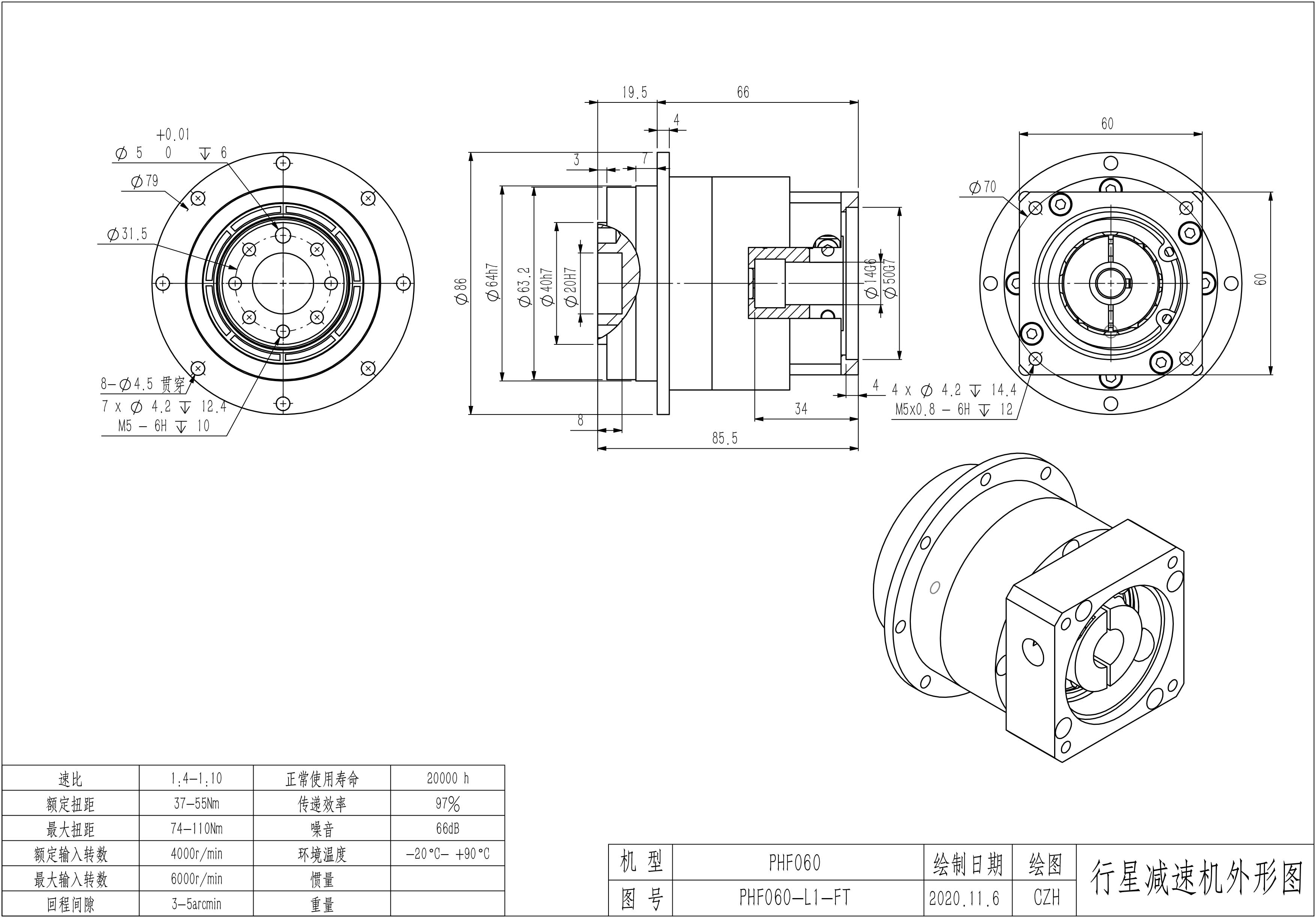 KB系列伺服行星减速机PHF060-L1 14-50-70-M5 PHF060-L1 14-50-70-M5-5B PHF060-L2 14-50-70-M5 PHF060-L2 14-50-70-M5-5B