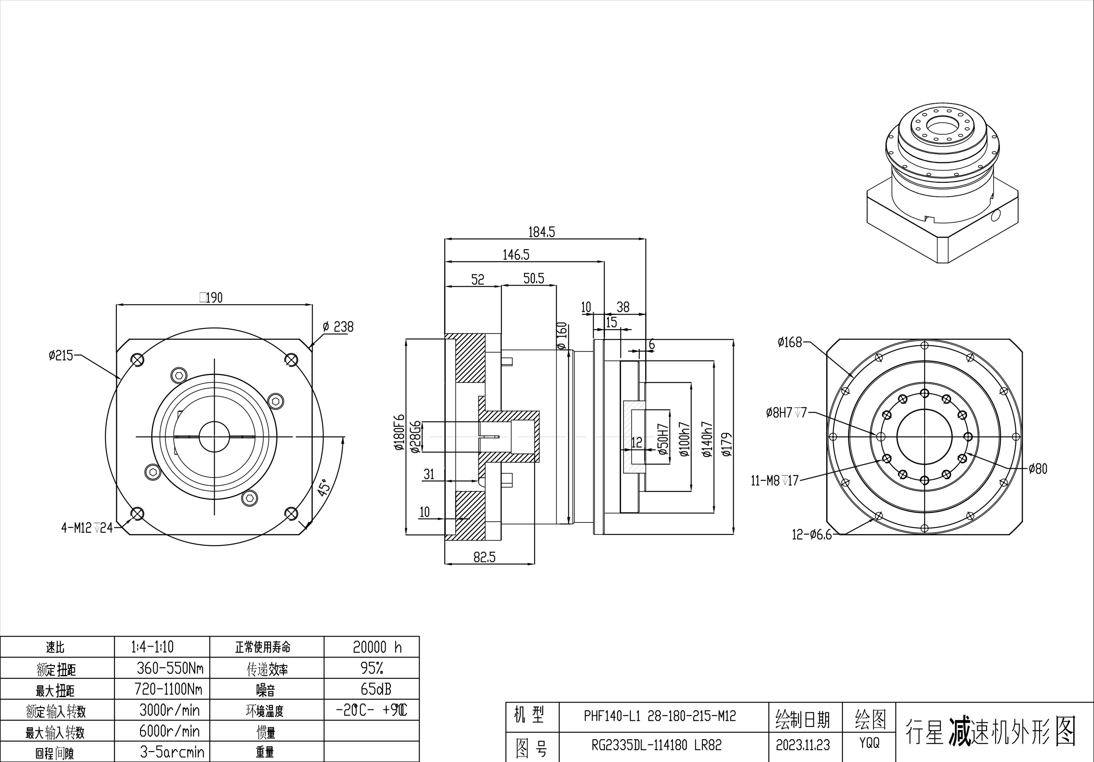 KB系列伺服行星减速机PHF140-L1 28-180-215-M12