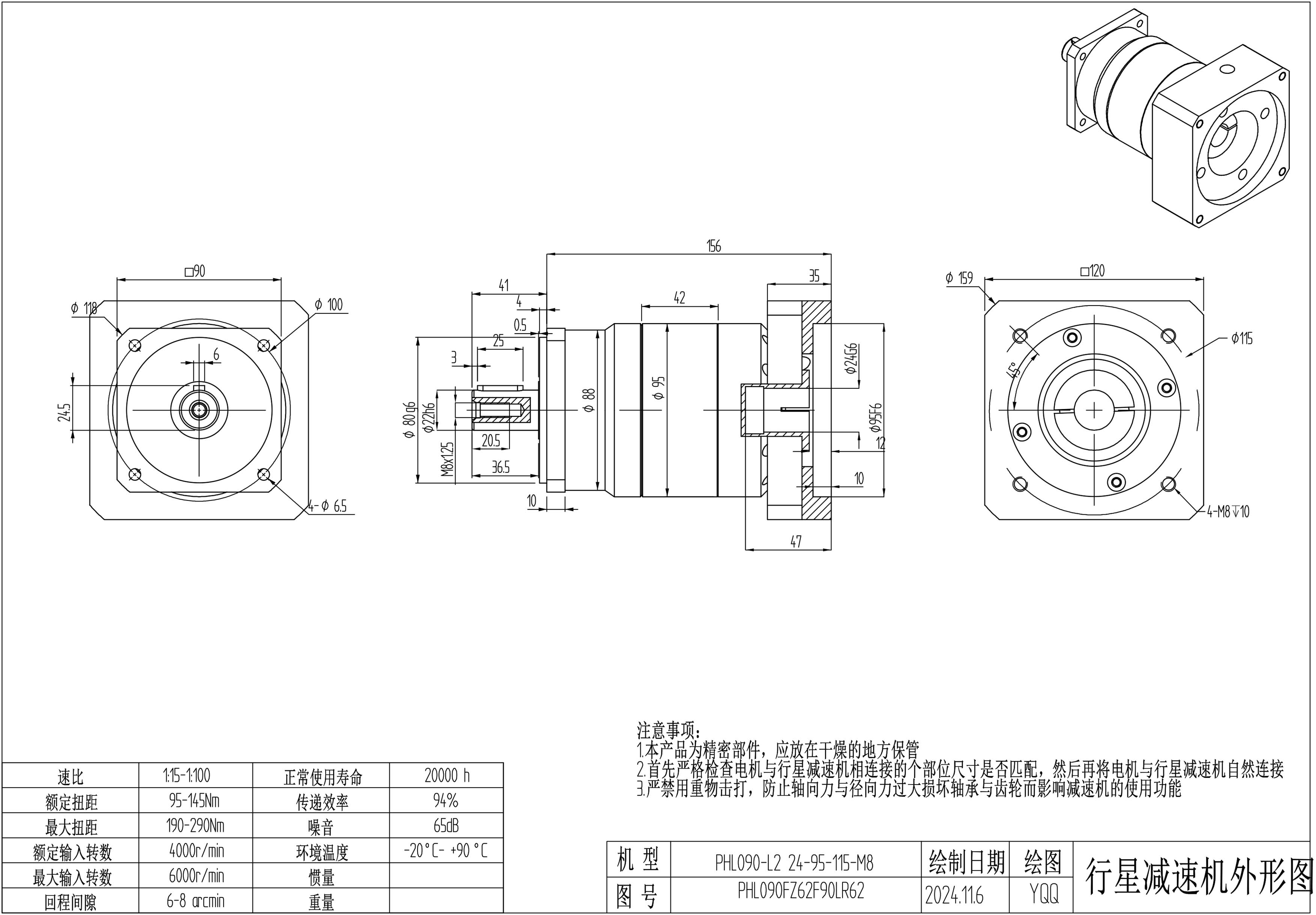 KB系列伺服行星减速机PHL090-L2 24-95-115-M8 CZ22