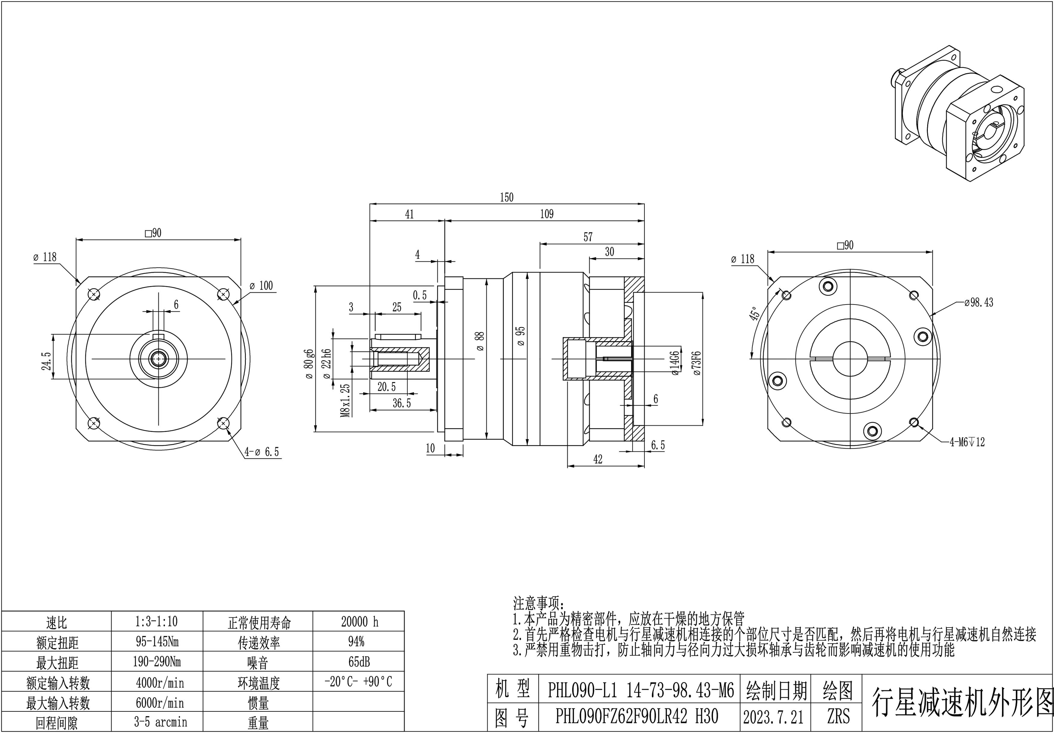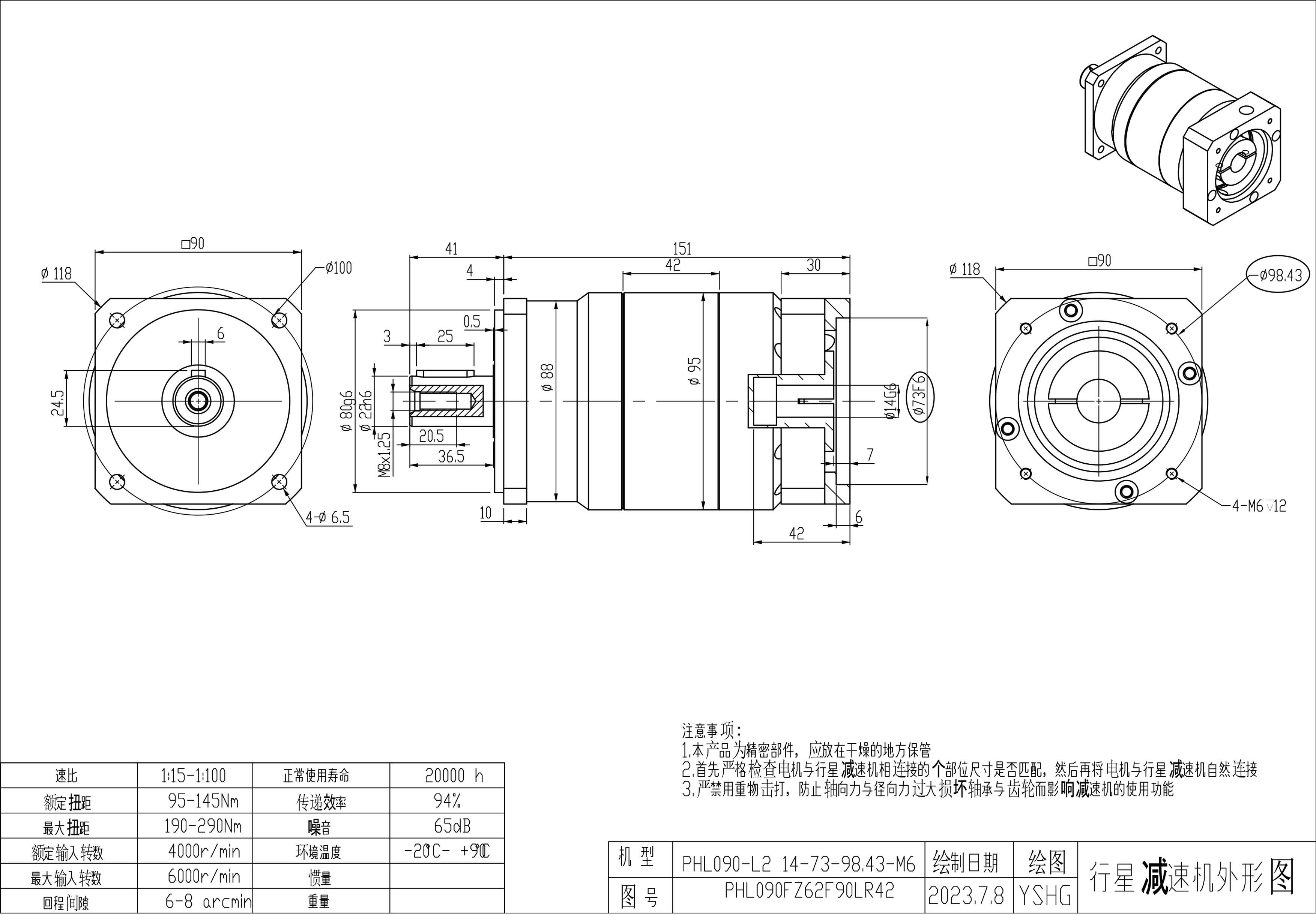 KB系列伺服行星减速机PHL090-L1 14-73-98.43-M6 PHL090-L1 19-60-98.43-M6 PHL090-L2 14-73-98.43-M6