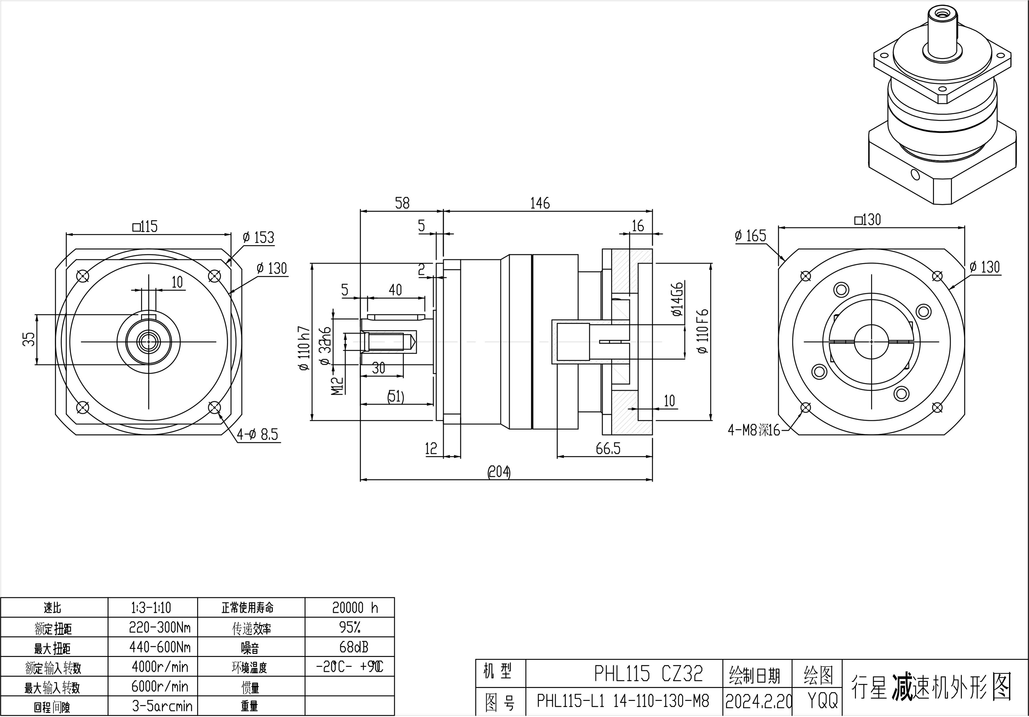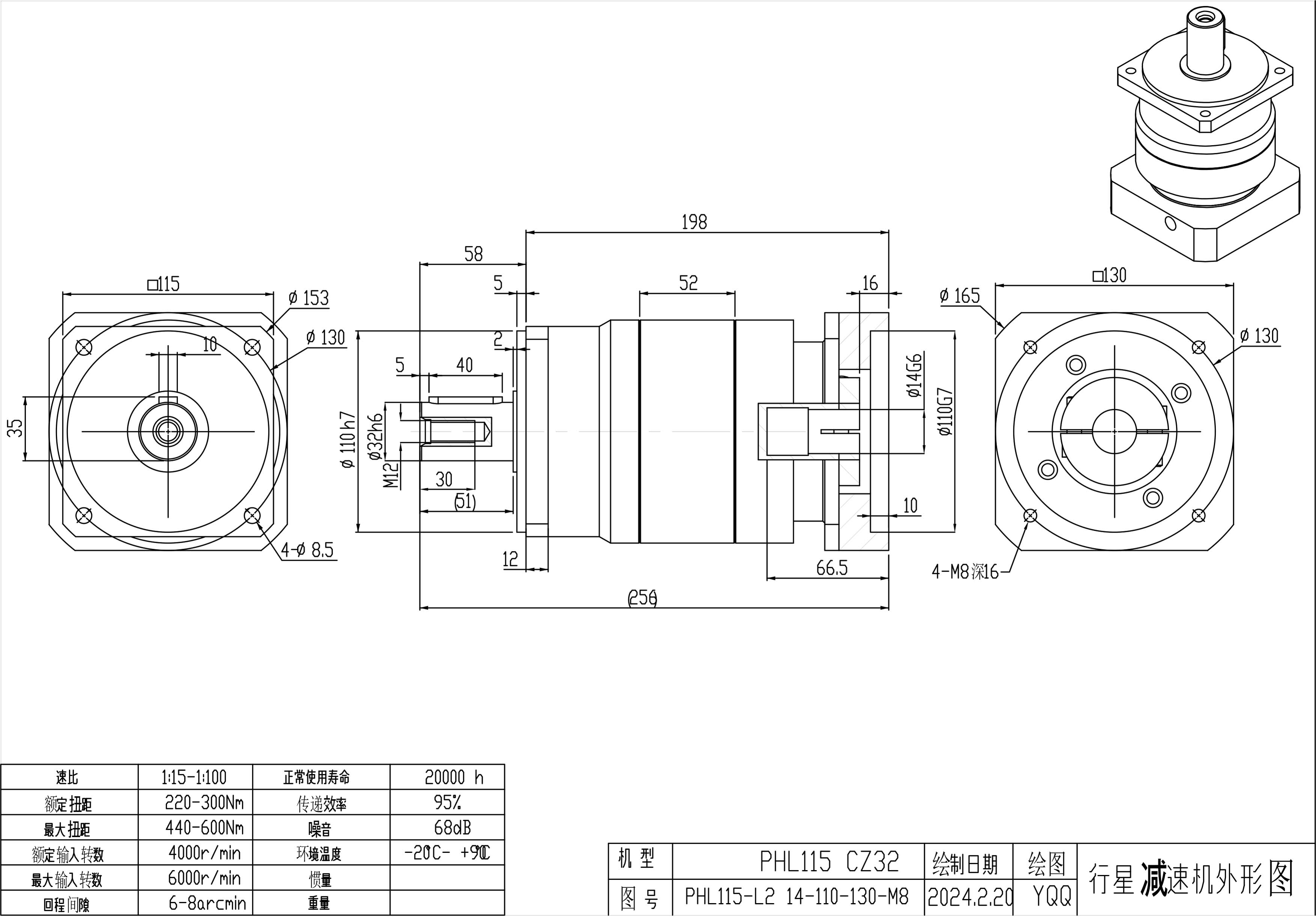 KB系列伺服行星减速机PHL115-L1 14-110-130-M8 CZ32 PHL115-L2 14-110-130-M8 CZ32