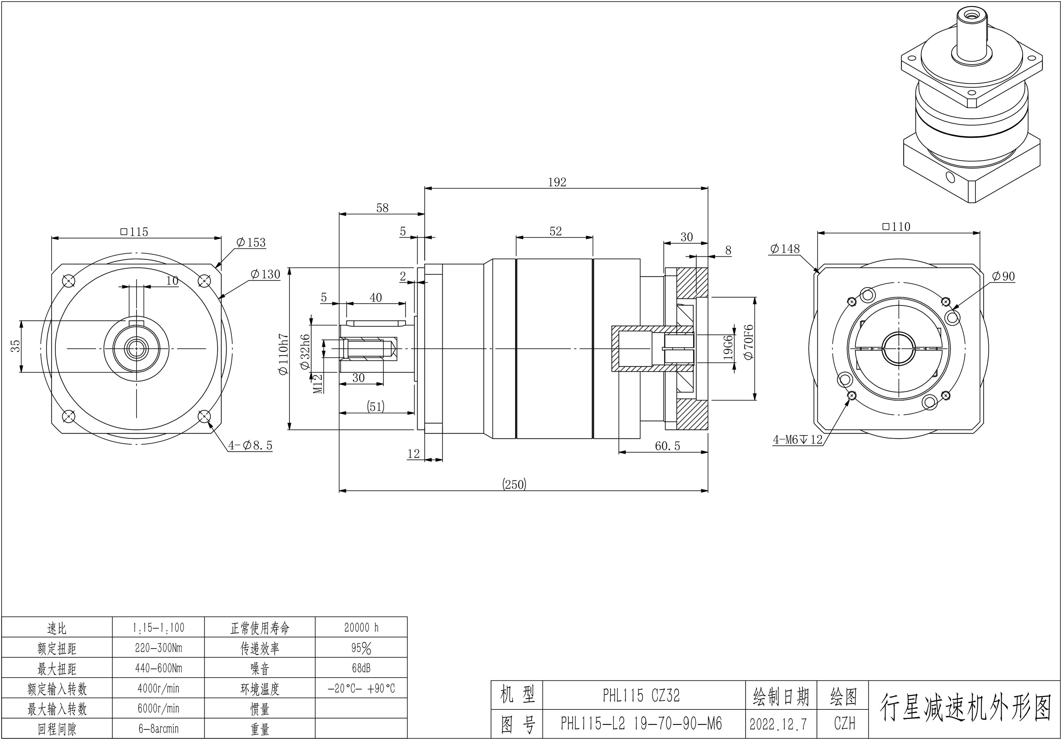 KB系列伺服行星减速机PHL115-L1 19-70-90-M6 PHL115-L2 19-70-90-M6 CZ32 PHL115-L2 19-70-90-M6
