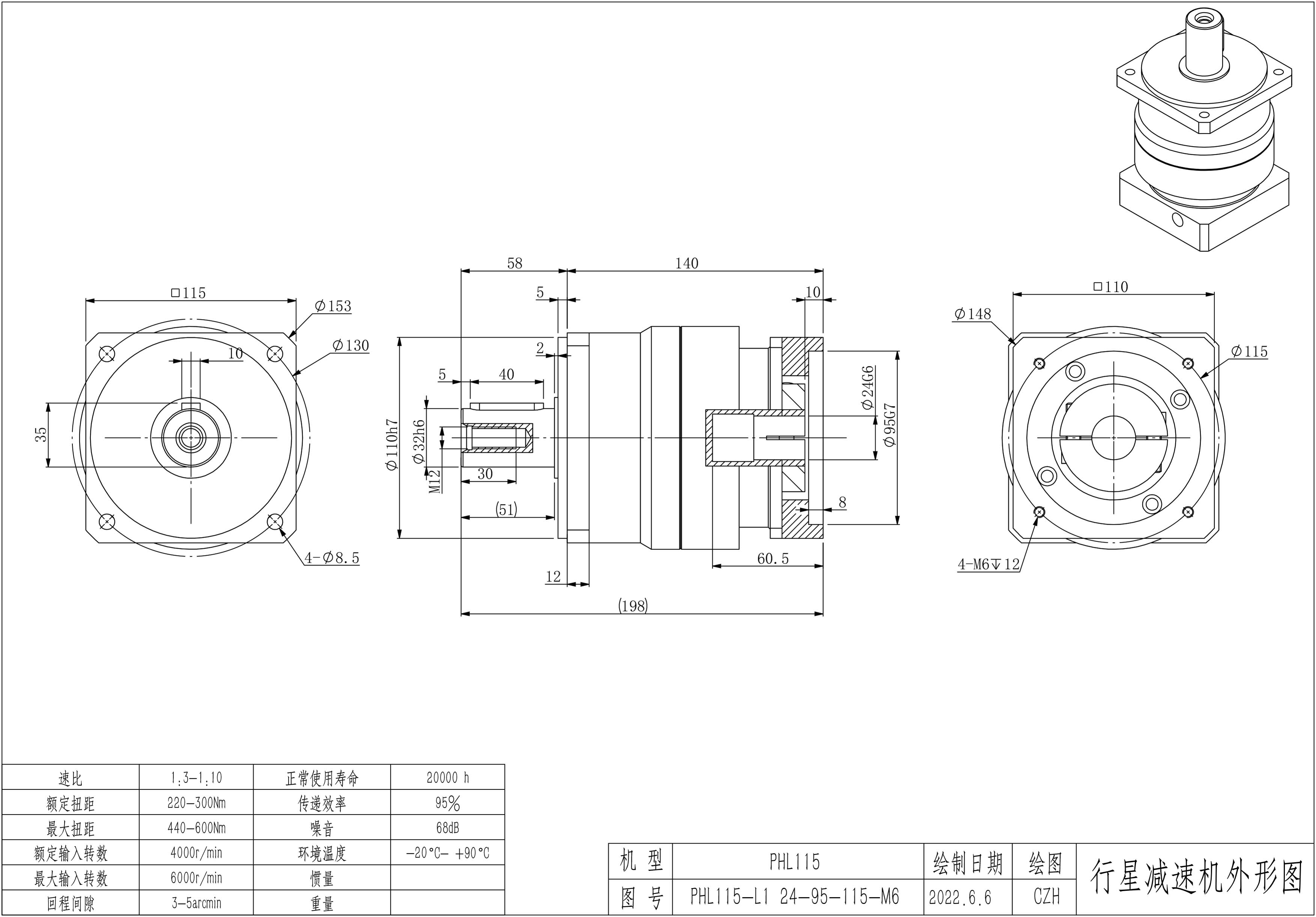 KB系列伺服行星减速机PHL115-L1 24-95-115-M6 LR60 CZ32 PHL115-L1 24-95-115-M6 LR60 PHL115-L2 24-95-115-M6 LR60 CZ32