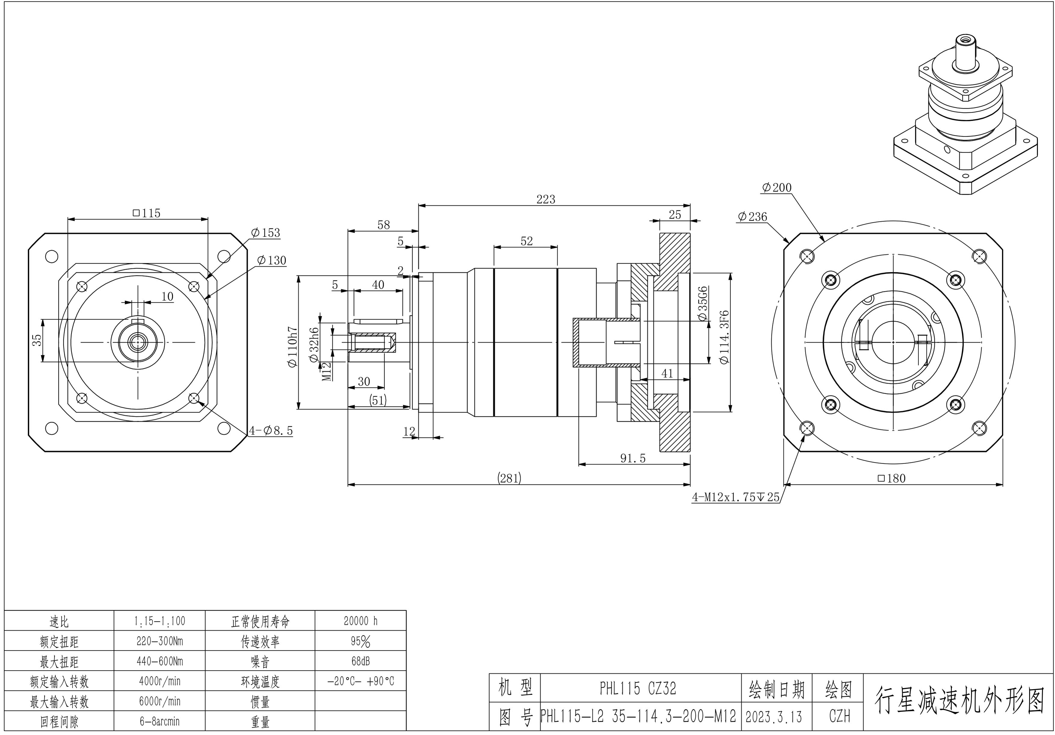 KB系列伺服行星减速机PHL115-L1 35-114.3-200-M12 CZ32 PHL115-L1 35-114.3-200-M12 PHL115-L2 35-114.3-200-M12 CZ32 PHL115-L2 35-114.3-200-M12