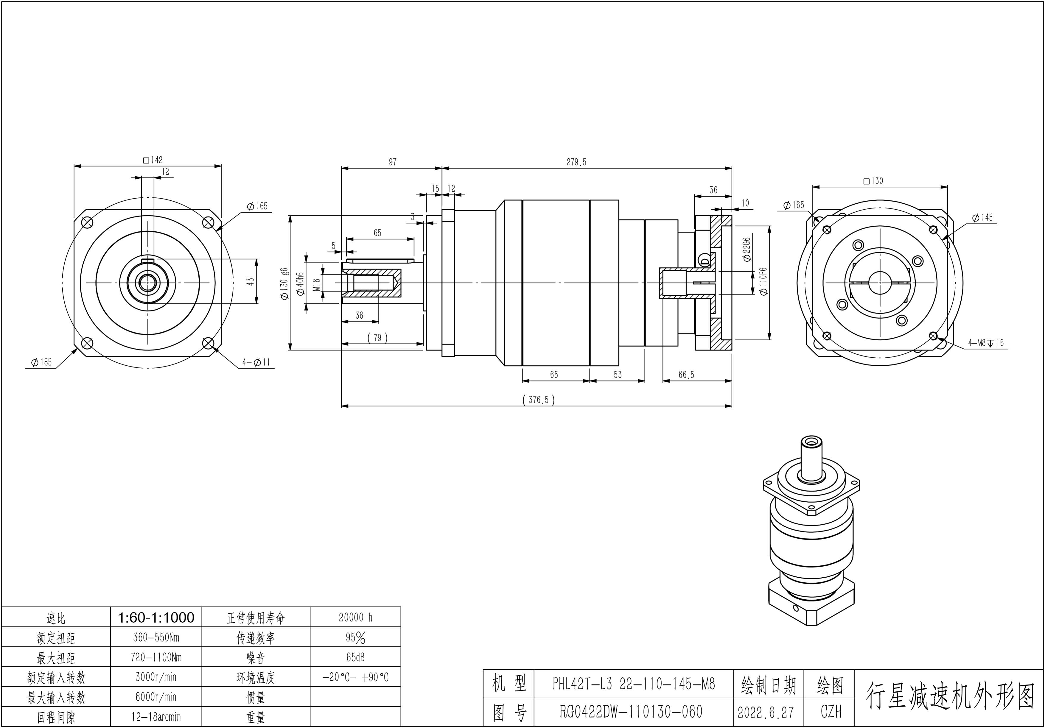 KB系列伺服行星减速机PHL142-L1 22-110-145-M8 PHL142T-L2 22-110-145-M8 PHL142T-L3 22-110-145-M8
