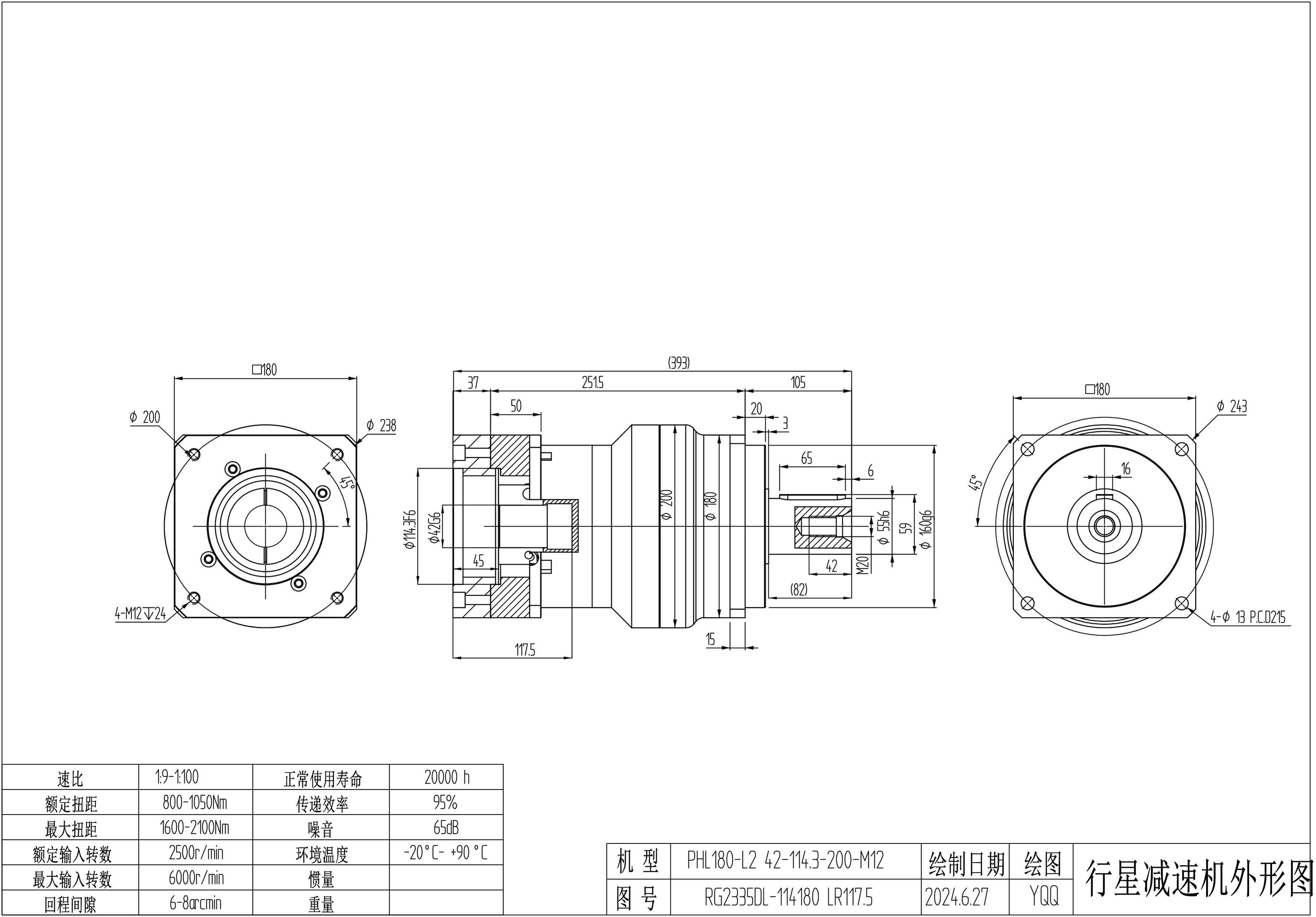 KB系列伺服行星减速机PHL180-L1 35-114.3-200-M12 PHL180T-L2 35-114.3-200-M12 PHL180-L1 38-180-215-M12-10B PHL180-L1 42-114.3-200-M12 PHL180T-L2 42-114.3-200-M12 LR117.5