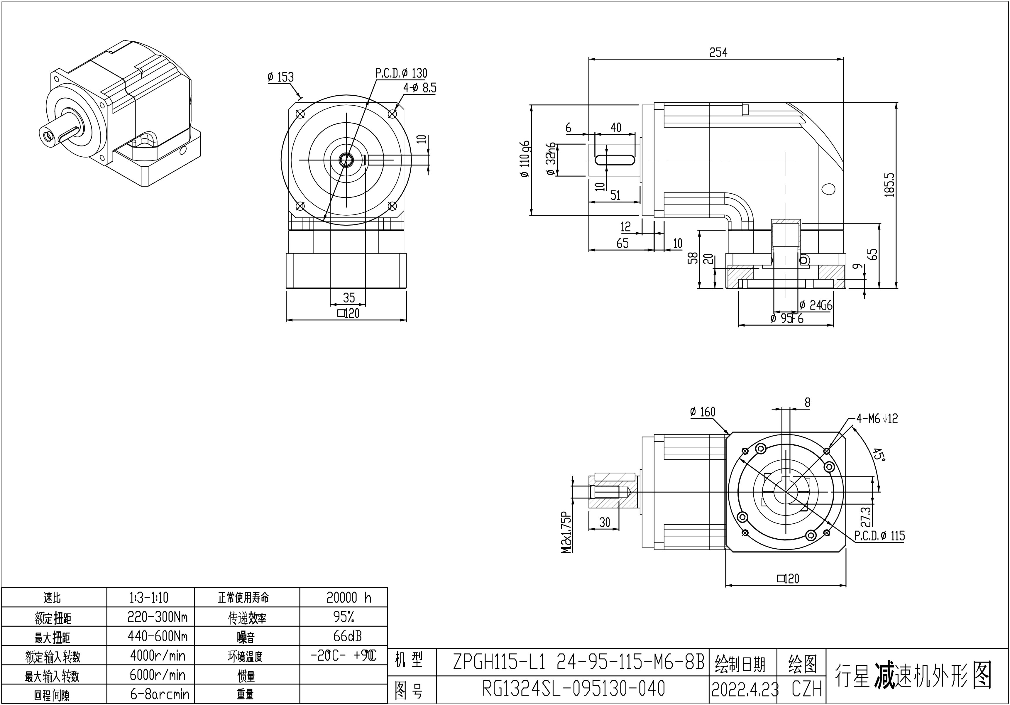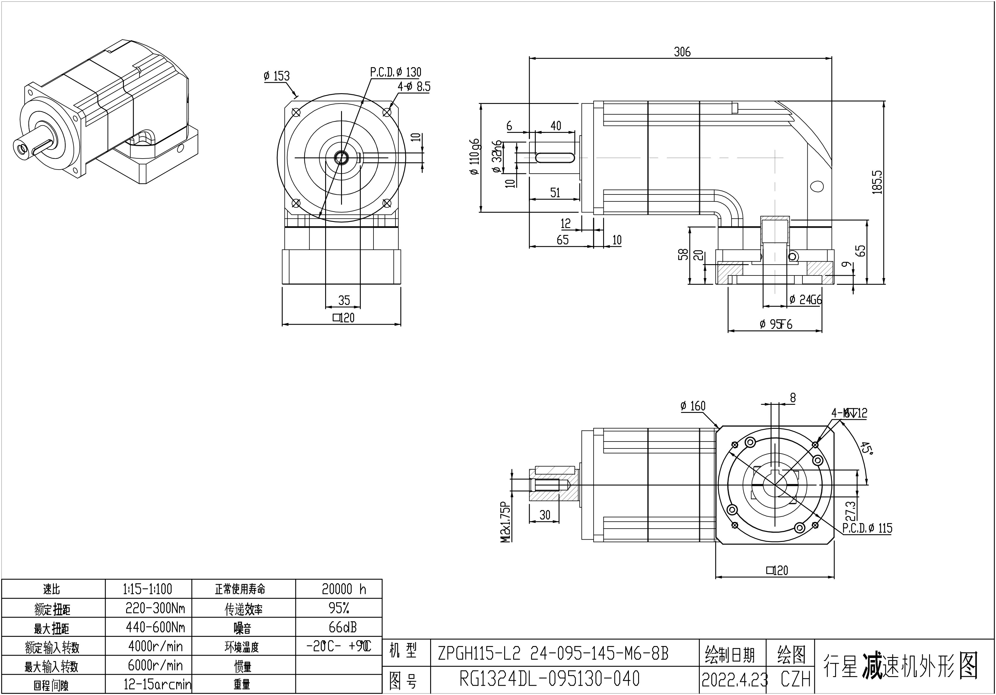 KB系列伺服行星减速机ZPGH115-L1 24-95-115-M6 LR65 ZPGH115-L1 24-95-115-M6-8B LR65 ZPGH115-L2 24-95-115-M6 LR65 ZPGH115-L2 24-95-115-M6-8B LR65
