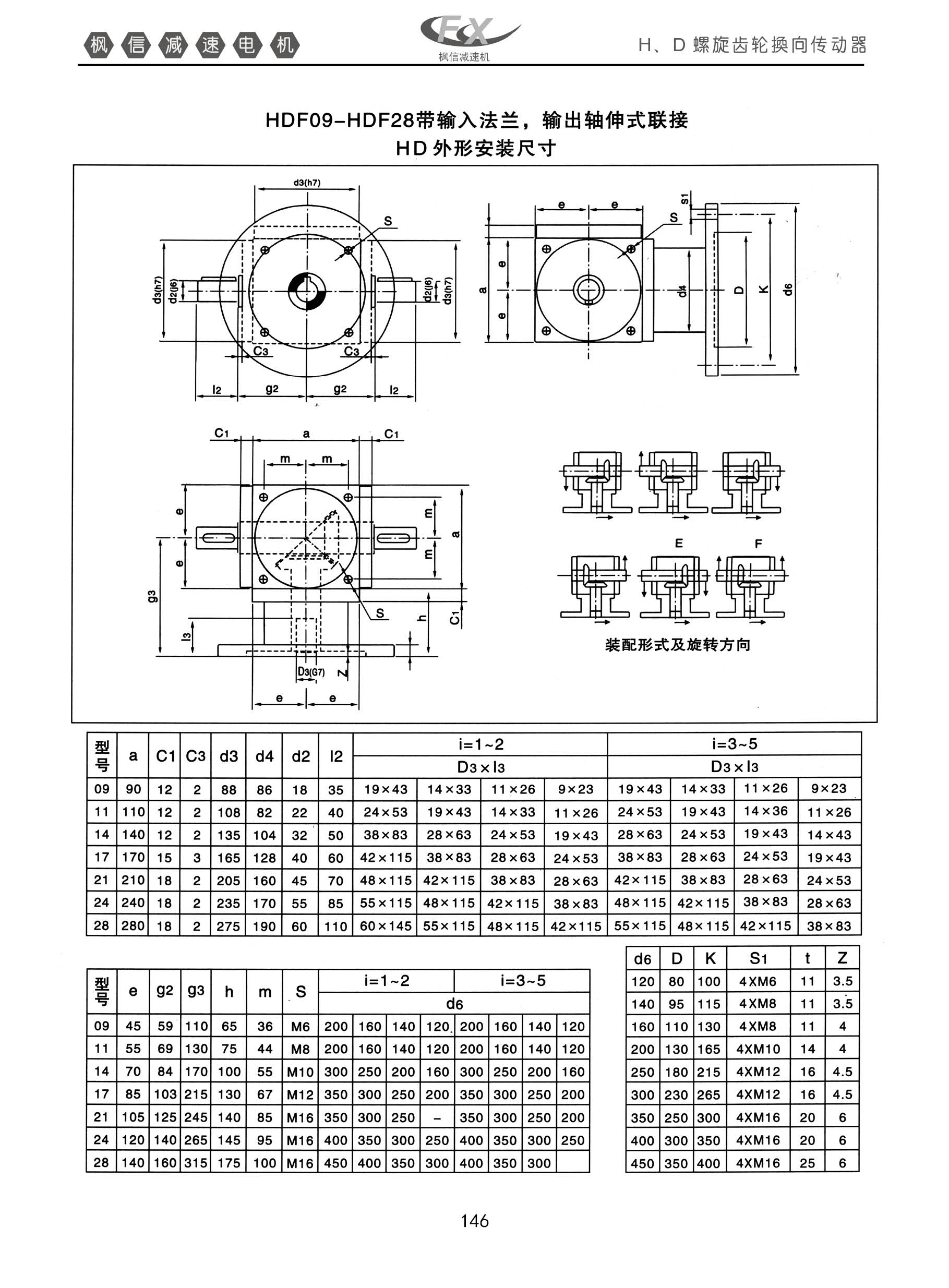 FXHD螺旋锥齿换向传动器FXHDF09-28带输入法兰输出轴伸式联接外型安装尺寸